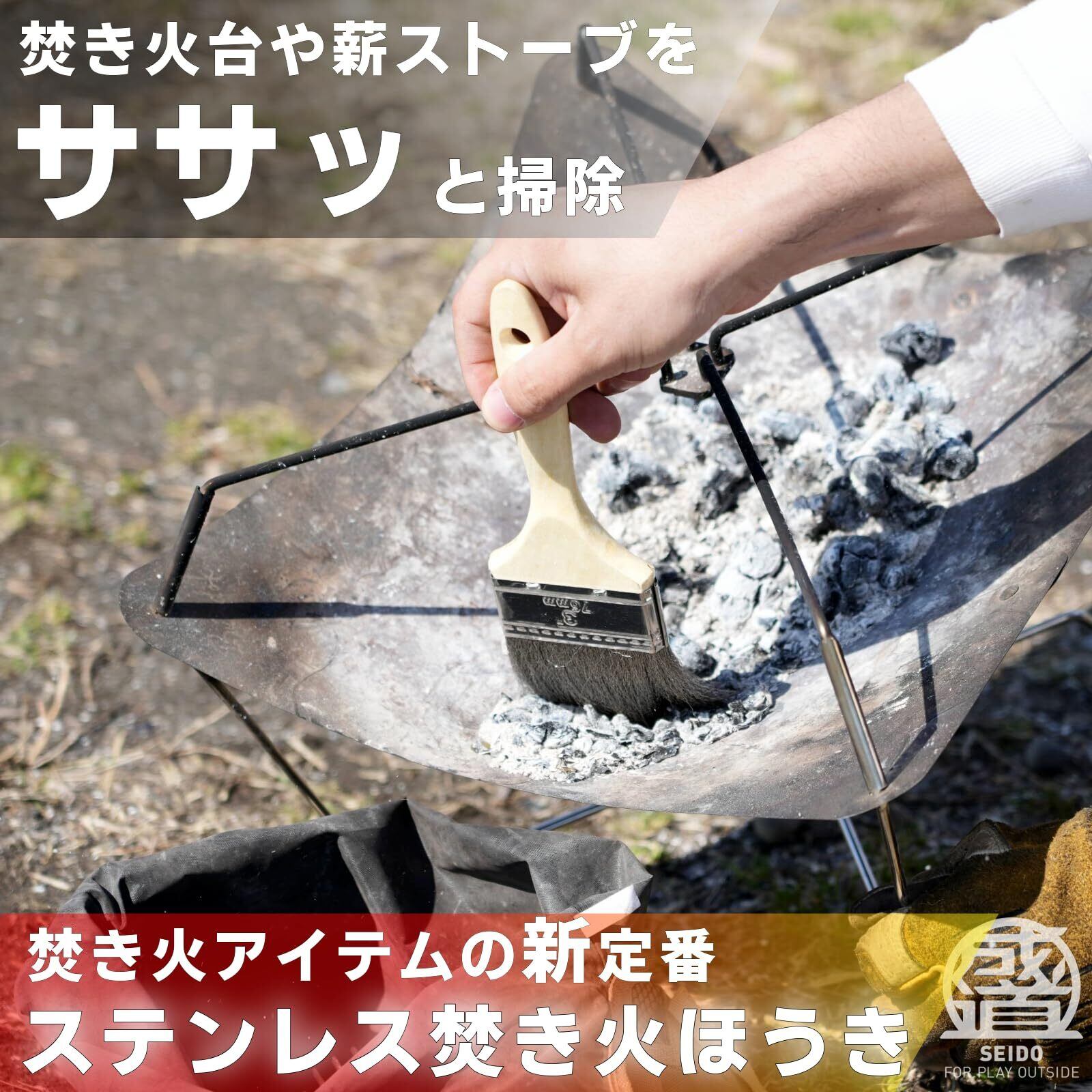 SEIDO 焚き火ほうき 焚き火ブラシ 焚き火台掃除ブラシ ステンレス刷毛 薪ストーブブラシ