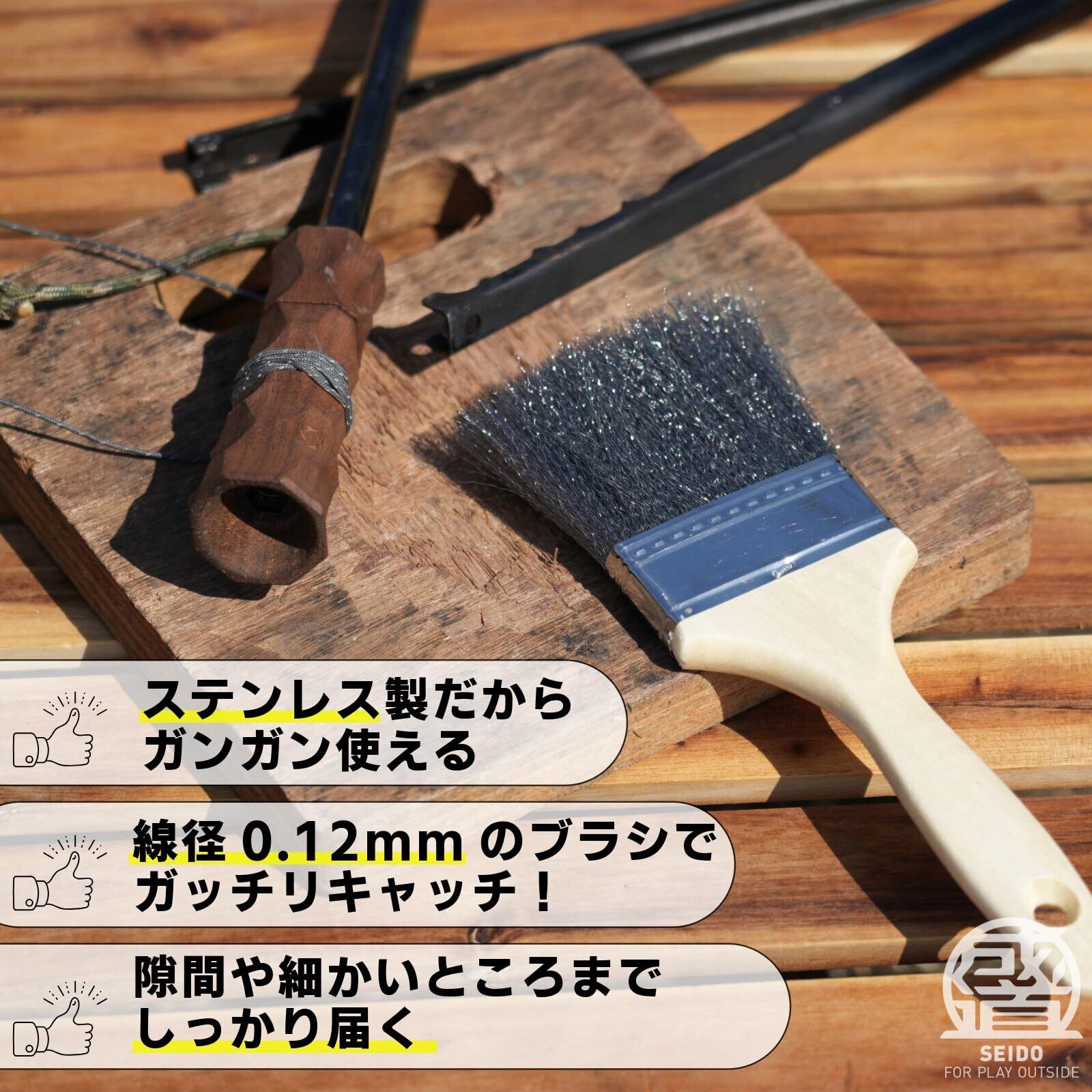 【新着商品】SEIDO 焚き火ほうき 焚き火ブラシ 焚き火台掃除ブラシ ステンレス刷毛 薪ストーブブラシ