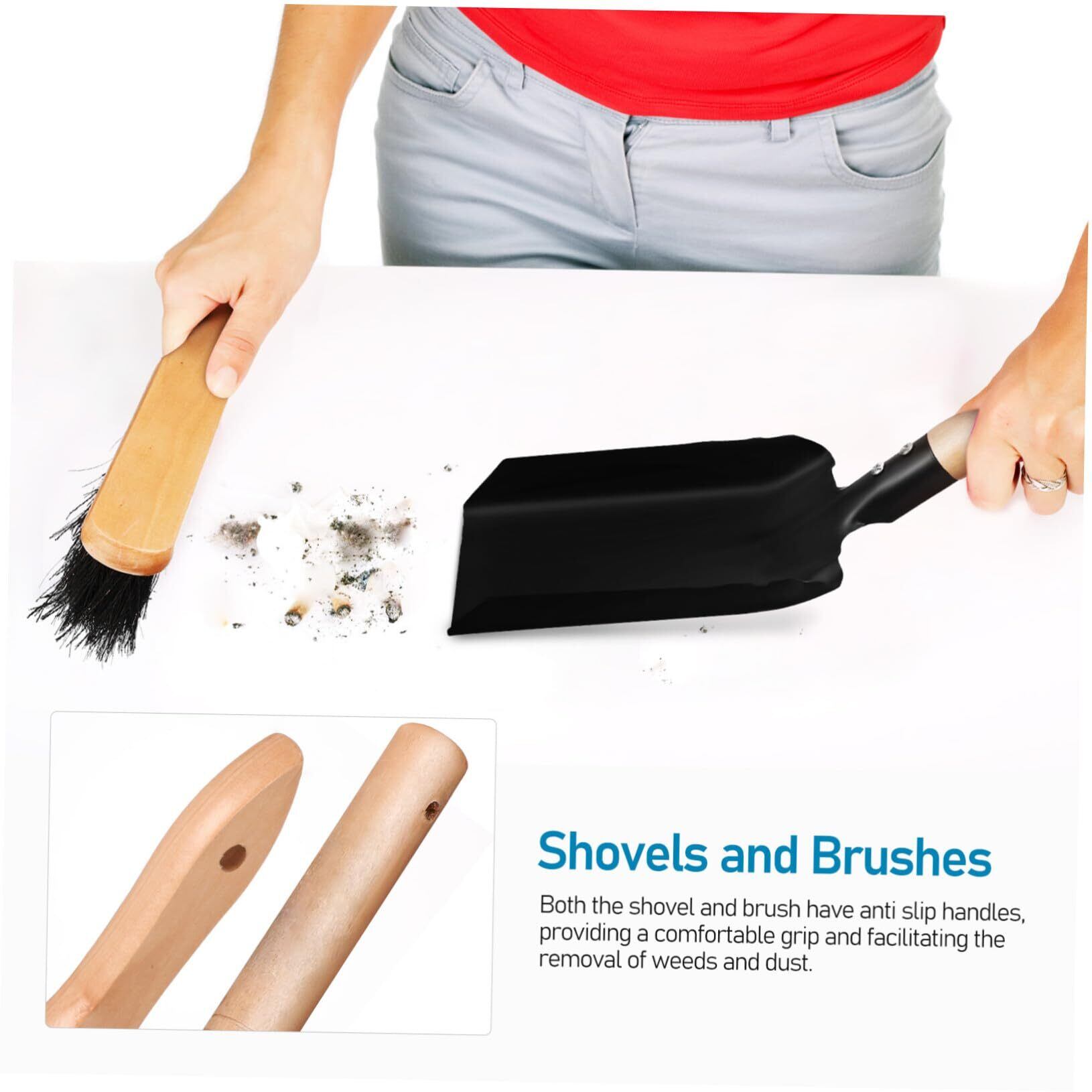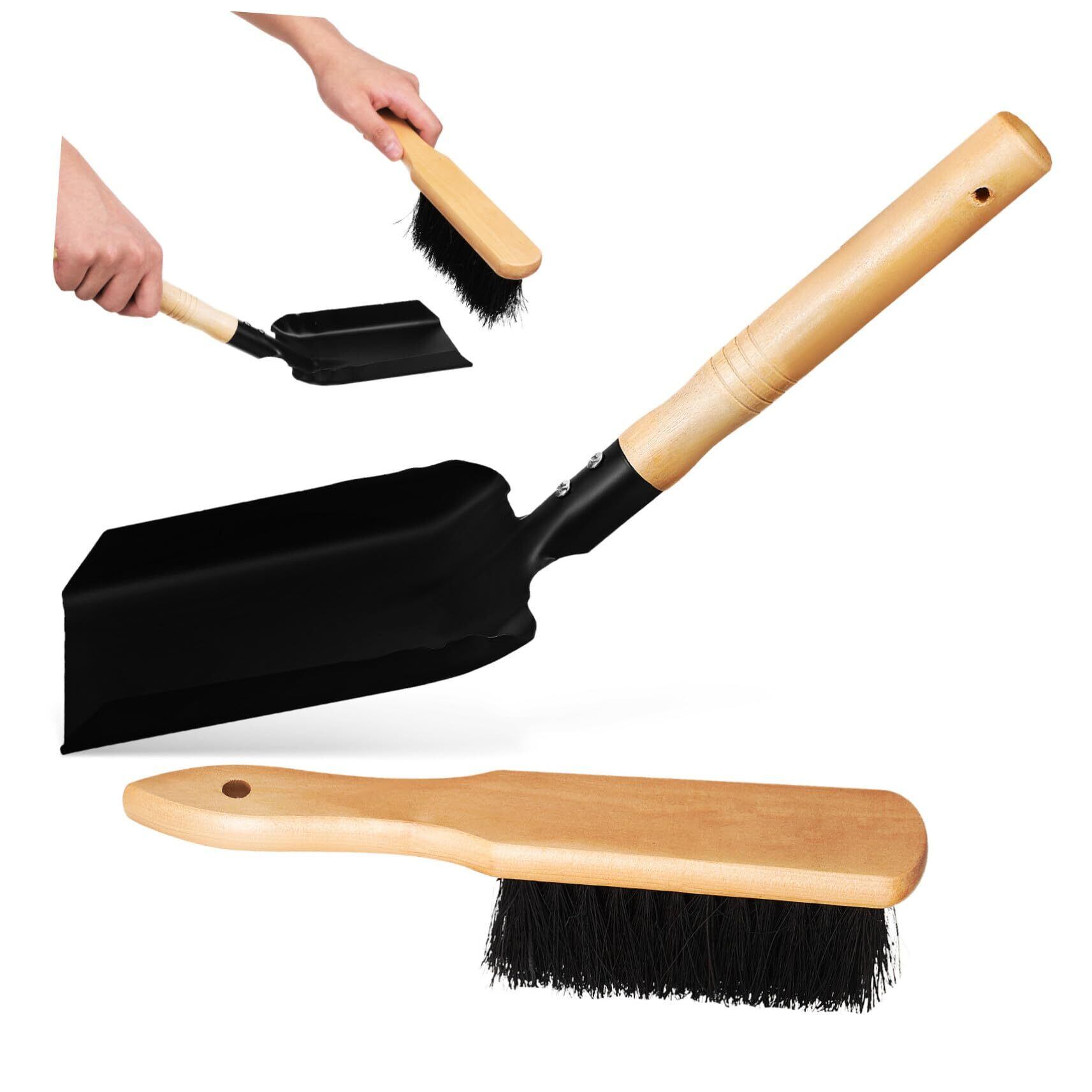 DOITOOL 暖炉用シャベルブラシセット 軽量コンパクト 木製ハンドル 柔らかいブラシ毛と鋭利なエッジ付き 薪ストーブ灰掃除用 28CM