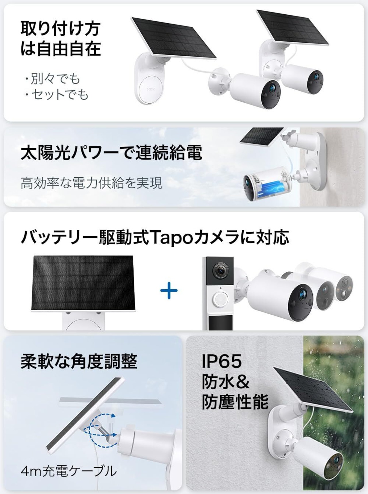 [特徴] Tapoのフルワイヤレスカメラ用、ソーラーパネル。コンパクトモデルが登場。