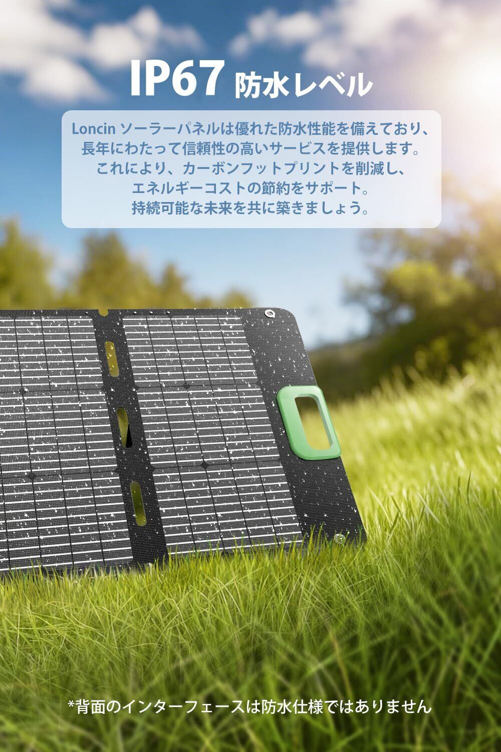 Loncin ソーラーパネル 100W 折り畳み式 太陽能パネル/ソーラーチャージャー/ポータブル電源充電用 単結晶+ETFE材料+23%高効率 防塵防水 IP67対応 薄型 軽量 携帯便利 アウトドア キャンプ 車中泊 節電/停電対策 防災グッズ バックアップ電源用 EP1650/350/600対応 ES-100W