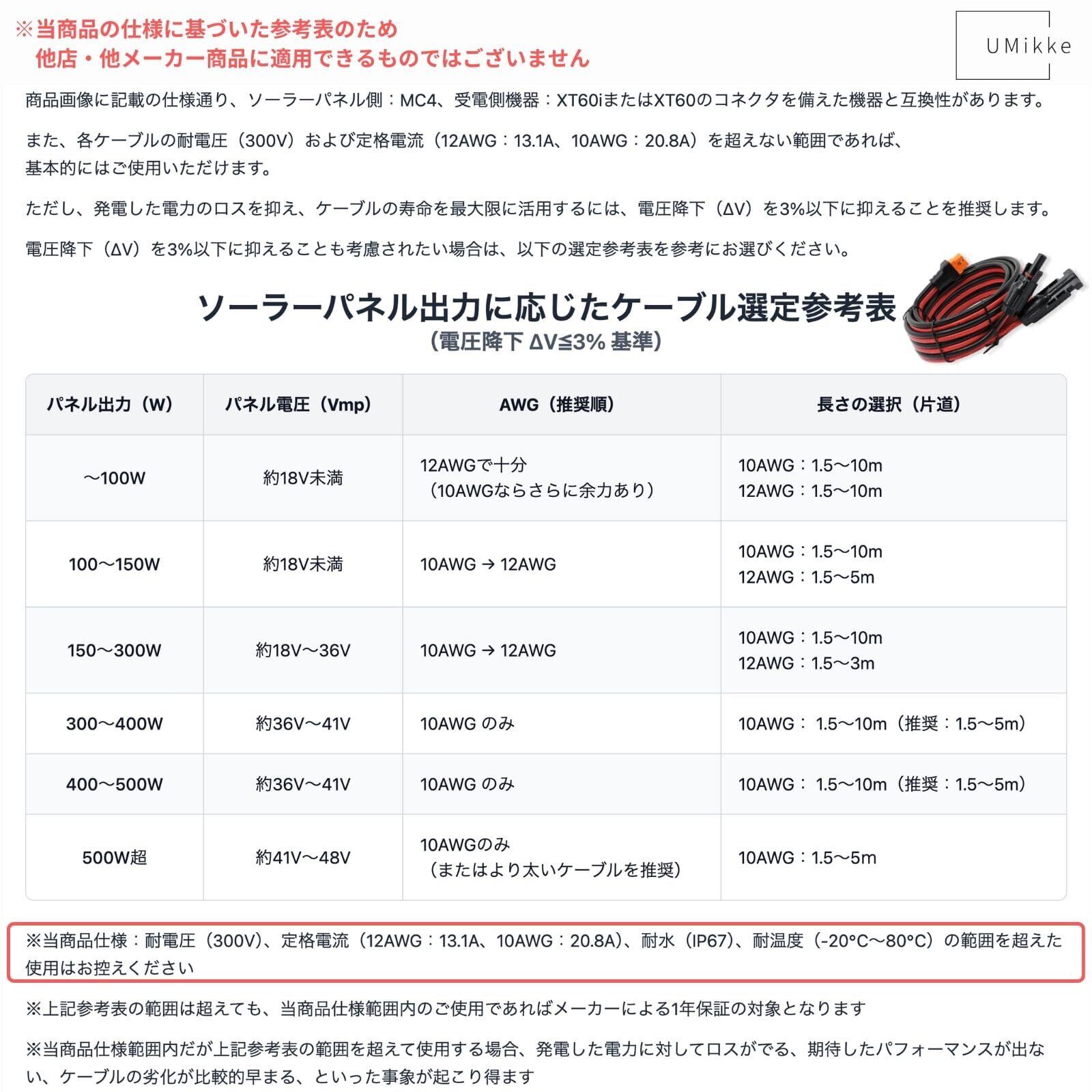 【特別価格】UMikke MC4 to XT60i ソーラー充電ケーブル 10AWG 20A 5m 太陽光パネル から ポータブル電源 変換アダプター 太陽光発電用機器・部材