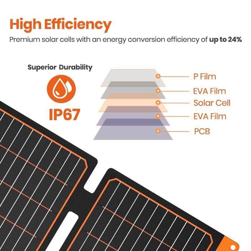 【conversion最大24%の高い変換効率】高透過率ETFE材料とミクロコン ベックス コンベックスデザインを使用して、2つのがっしりしている単結晶シリコンパネルで作られたミニソーラーパネルで、太陽との接触面積とエネルギーの変換速度を増加させます。ソーラーパネルは24%まで変換でき、十分な日光の下で太陽エネルギーを自由に変換します。