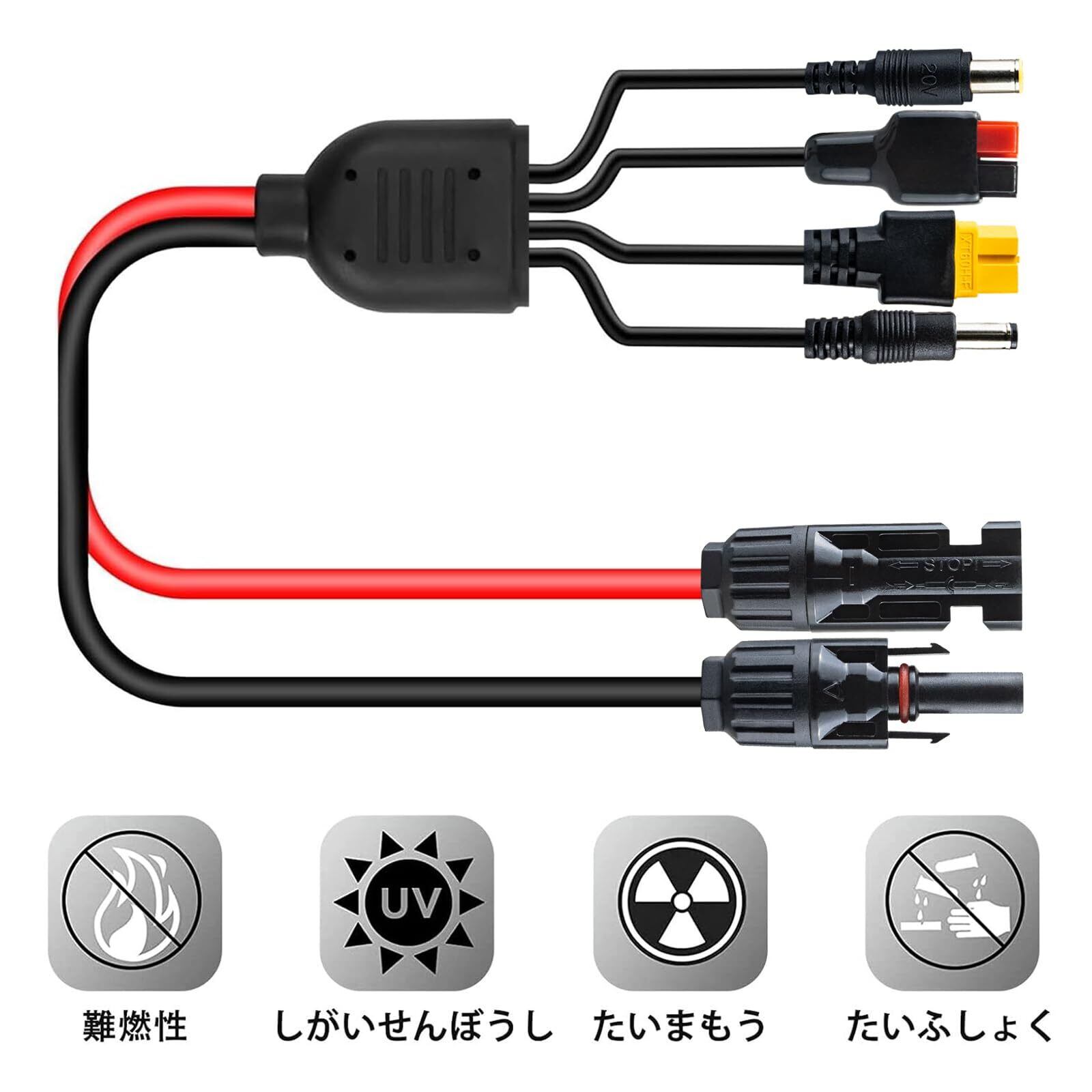 【特価セール】1M 4 in 1 ソーラー充電ケーブル 16AWG 太陽光充電変換ケーブル 1 to 4 ソーラーパネルコネクター to Anderson/XT60/DC7909/DC5521 変換コネクター IP67 防水 ポータブル電源、折り畳み式ソーラパネル、 太陽光発電所、RVに適用