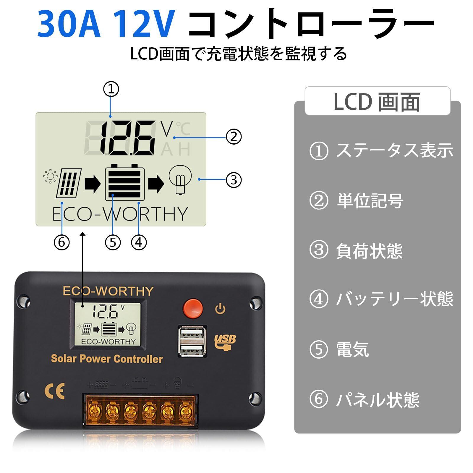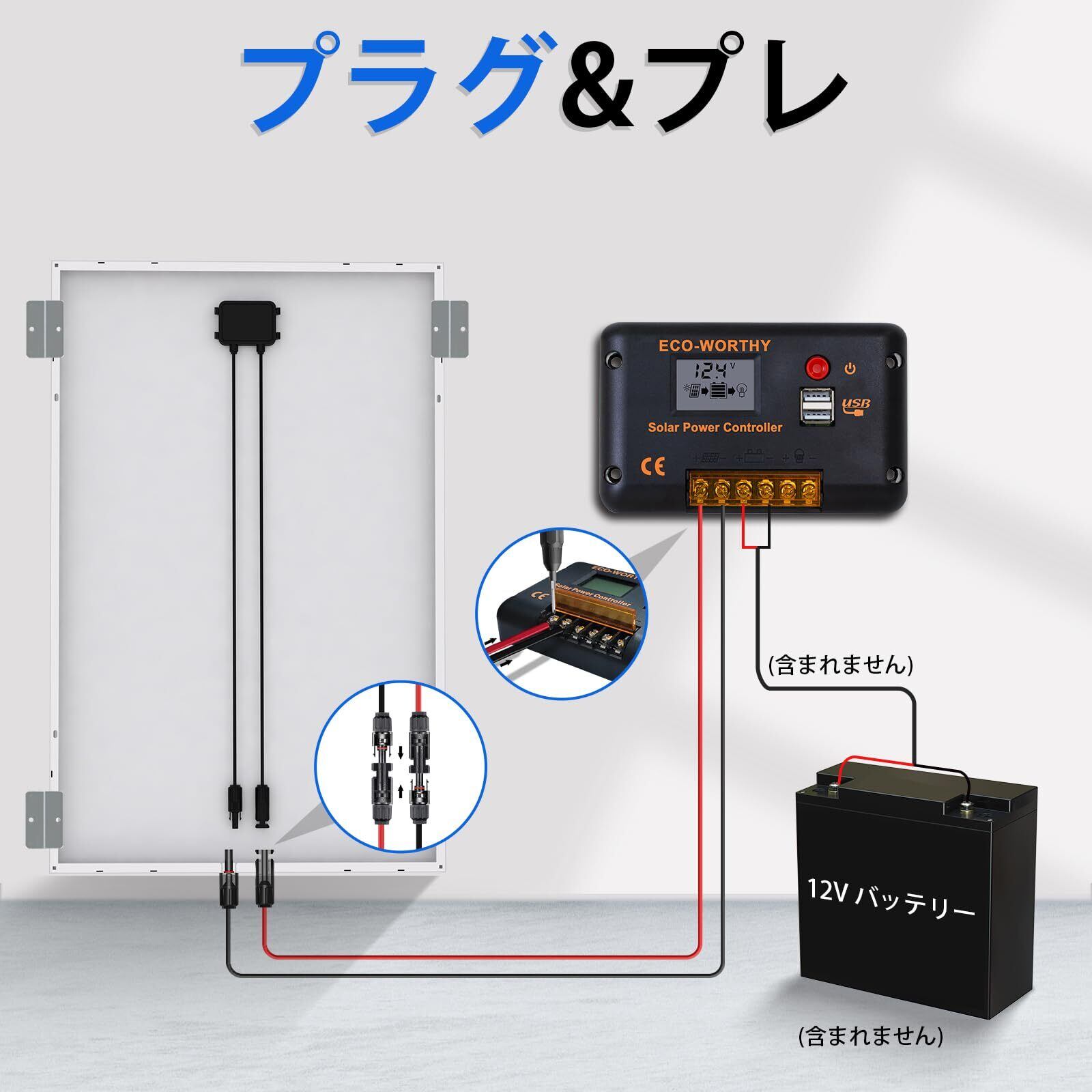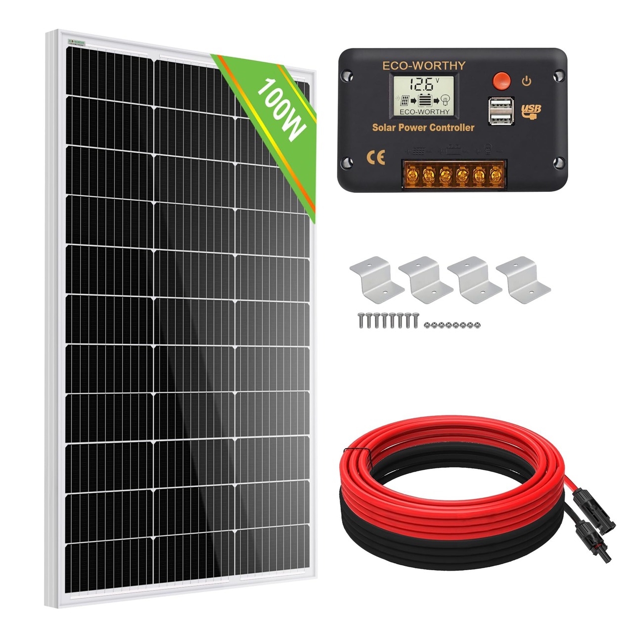 ECO-WORTHY 100W 12V ソーラーパネルキット:100W ソーラーパネル + 30Aチャージコントローラー +ケーブル+Z形ブラケット 23%変換効率 家庭用 DIY 小屋 トレーラー キャンプ用 災害対策 独立型 自作 小型 耐蝕性 RV キャンピングカー ベランダーに設置自家発電 12Vバッテリー充電「初心者向けDIY」