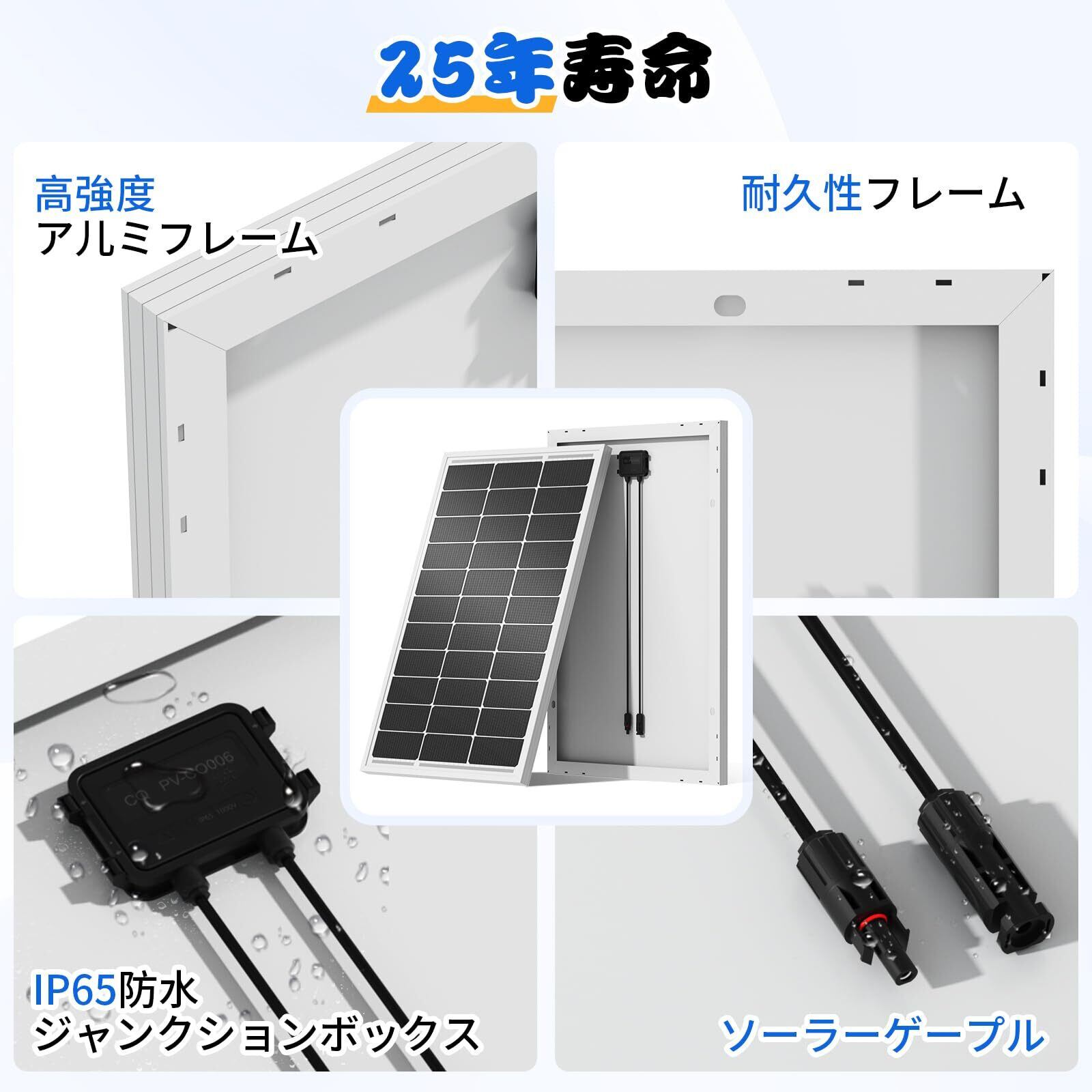 【23%高変換効率】新規の先進な12BB技術採用し、太陽光の転換効率は23%電力に変換することを実現しました。単結晶パネルには高効率の太陽電池が搭載されており、スペース効率の向上に役立ちます。ソーラーパネル:100w サイズ:895*585*350m 重量:6.6kg。