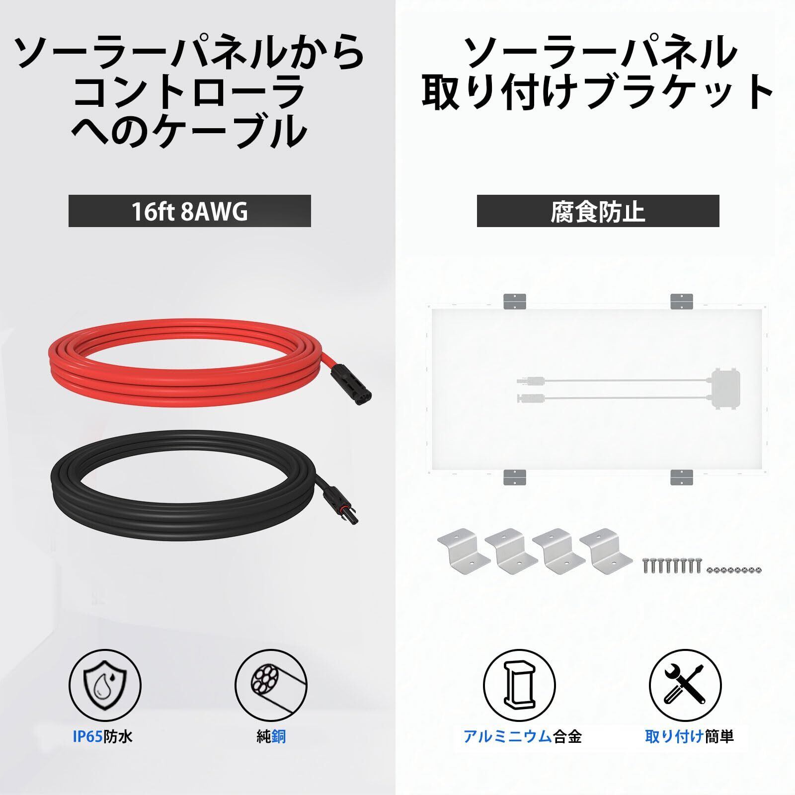 付属コンポーネント 100W ソーラーパネル, 30A チャージコントローラー, ケーブル, Z形ブラケット