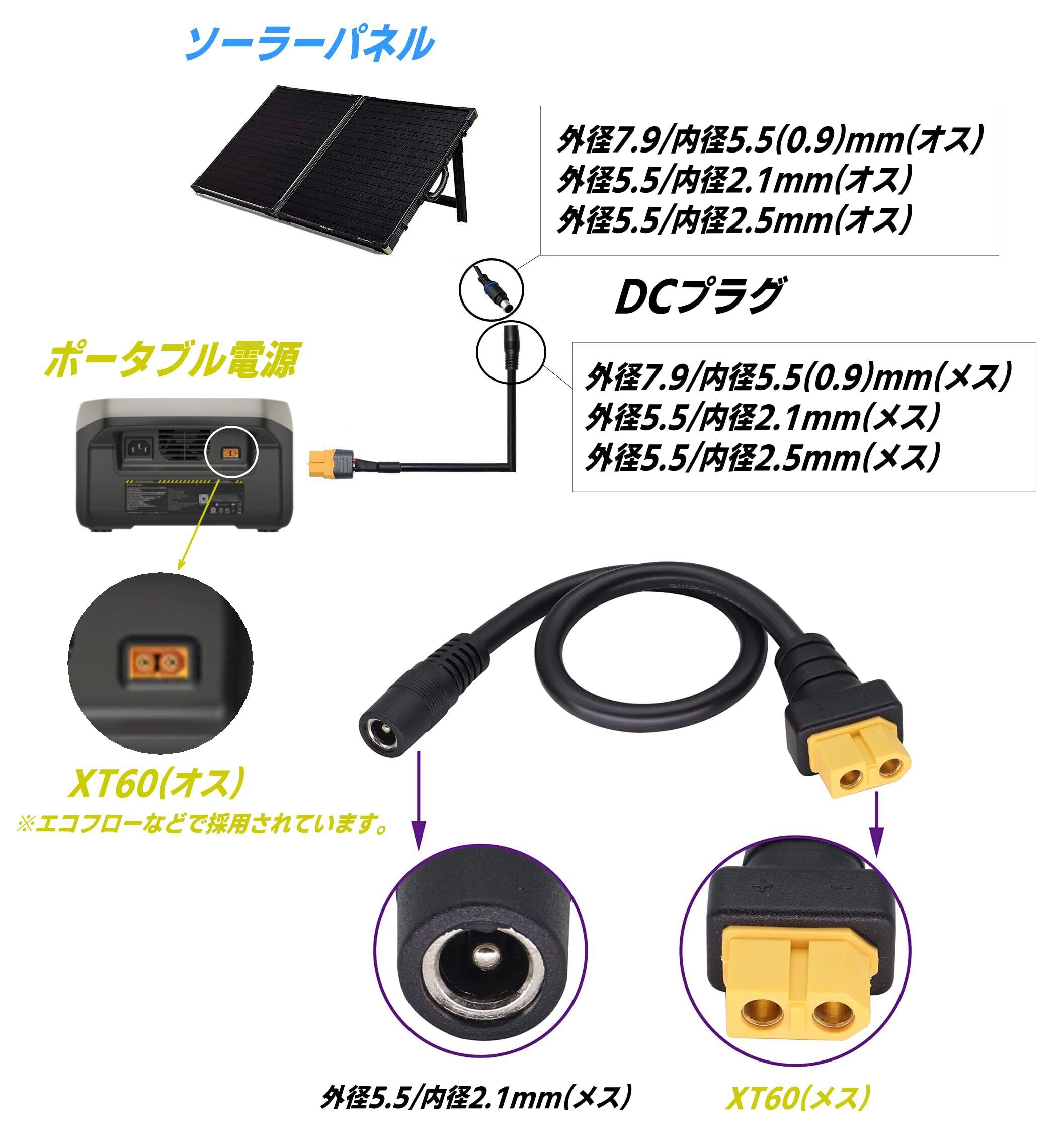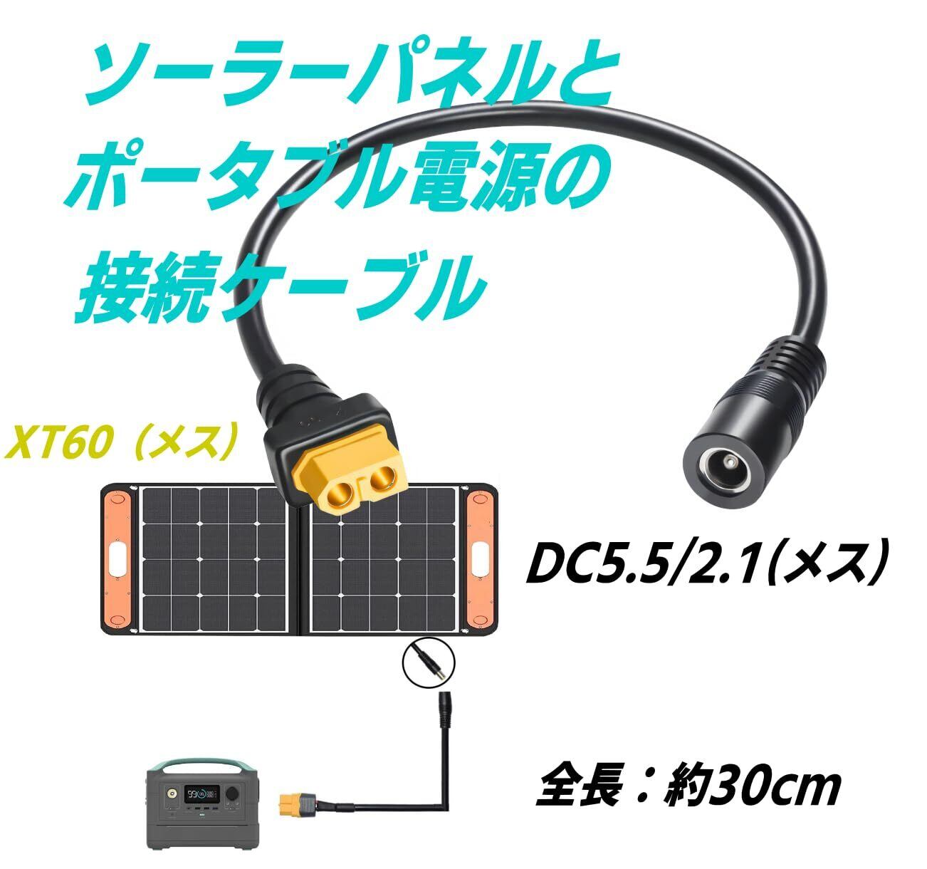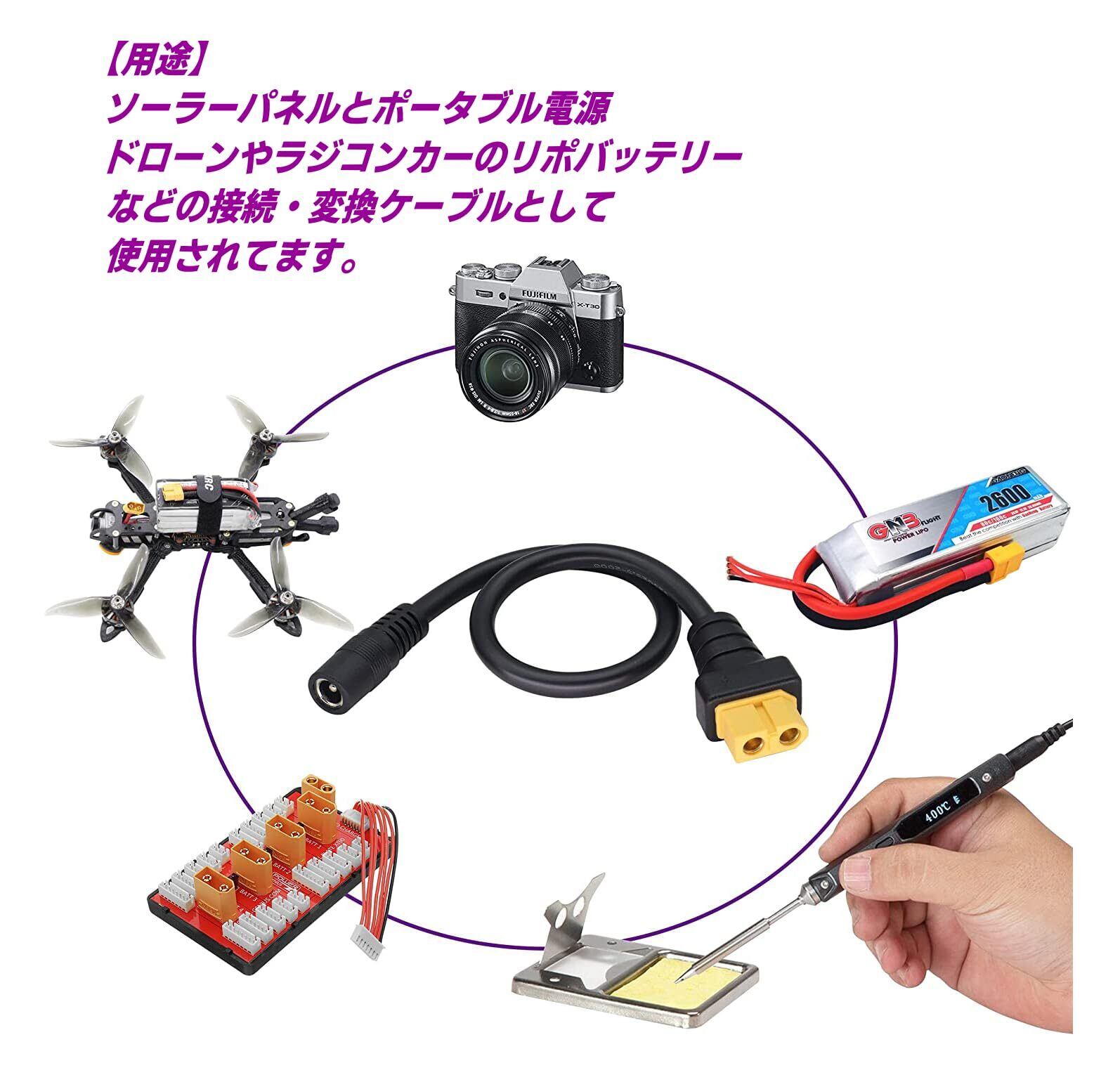 ソーラーパネルからポータブル電源へ 15AWG 10A XT60(メス)-DC外径5.5/内径2.1mm(メス)ケーブル 30cm FPVモニター ドローン電源コード C2XT60F5521F030