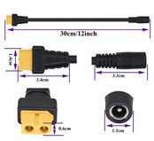 【仕様】 ■数量:1本 □XT60(メス)-DC外径5.5/内径2.1mm(メス) ■ケーブル規格:15AWG 10A □ケーブル長:30cm ■ビニール簡易パッケージ ※入荷ロットによりデザインが変更となることがあります。