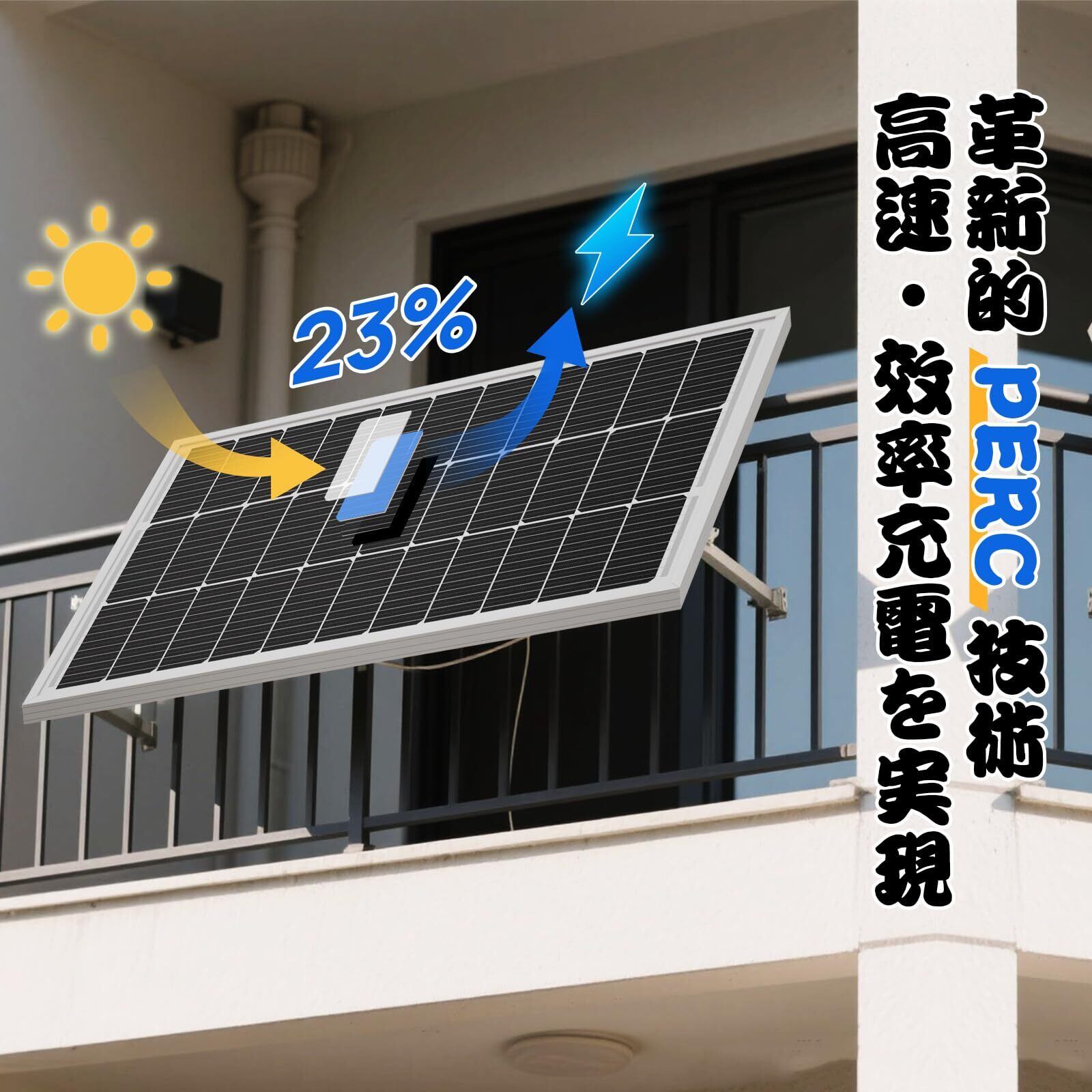 【最先端PERC・高い効率23%実現】: ECO-WORTHYソーラーパネルはPERC高性能単結晶太陽電池を使用し、十分な光の元で最大23%を実現いています。100w当たりの単価が安く発電効率、小型軽量で品質良しです
