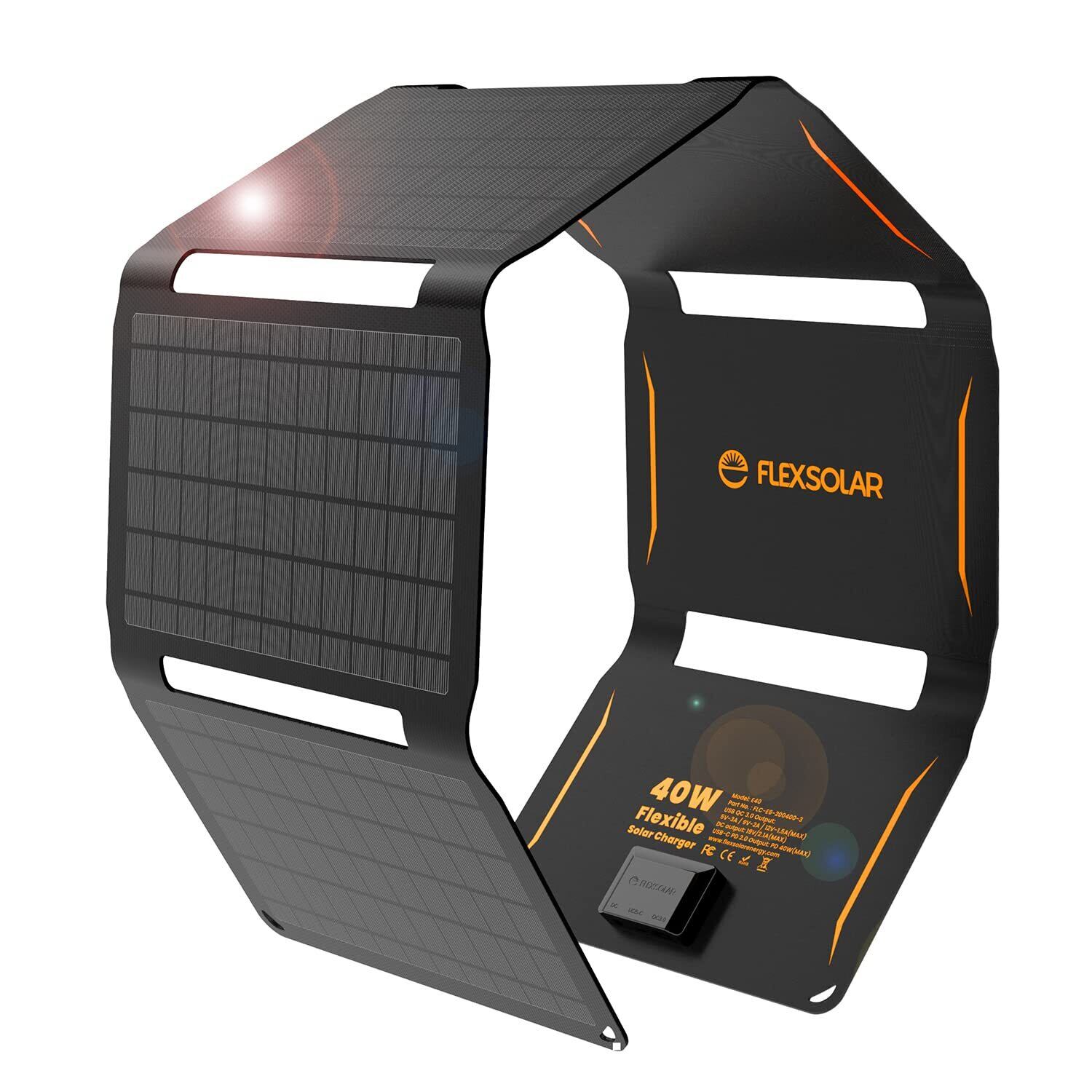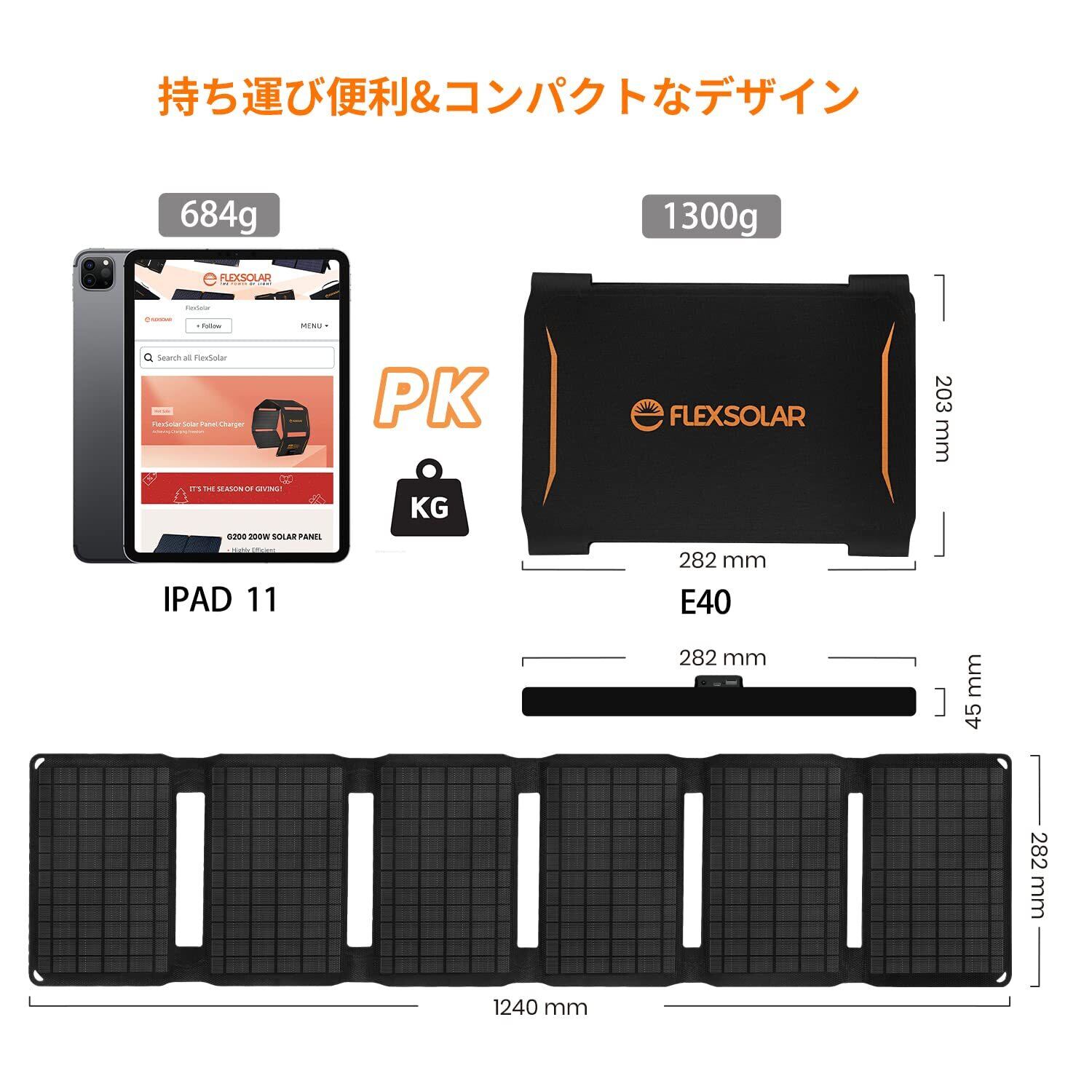 FlexSolar ソーラーパネル 40W ソーラーチャージャー usb3出力ポートETFE材質充電器防水防塵 DC/PD40W/QC3.0急速充電 ポータブル電源/Phone/Android対応