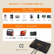 【ソーラーパネル充電器】1*QC3.0 USB-A(最大18W)/1*PD2.0 USB-C(最大18w)(5v-3A/9V-2A/12V-1.5A)/19V DC(5.5*2.1mm)(最大40W)の内蔵出力で、スマホ (AndroidとPhone)/Pad/パワーバンク/小型発電所/その他の日常的な電子機器を直接接続して充電できます。USB-AとUSB-Cを使用すると、両方の電子機器を一度に充電できます。充電が少し遅くなる場合は、DCポートとUSBポートを一緒に使用することをお勧めしません。(注意:ソーラー パネルは電力を蓄えることができません。)