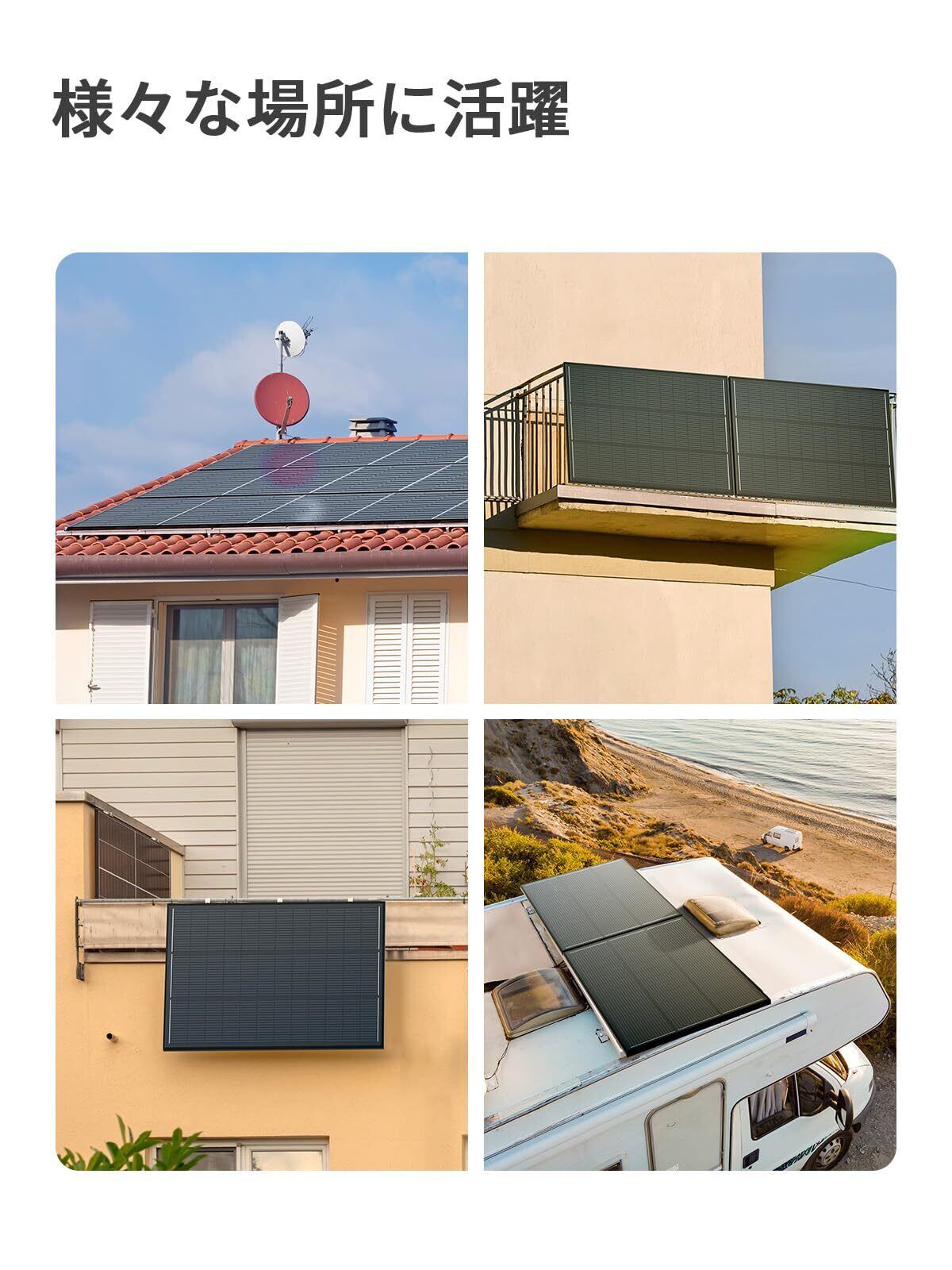 【広い適用性】AFERIY 120wソーラーパネルの設置サイズ:「930×670×35mm」 日常利用はもちろん、住宅(屋根/ベランダ)・車両(キャンピングカー/船舶))への設置に最適。さらに、地震・台風・大雪などの災害時には、信頼性の高い非常用電源として活用いただけます。