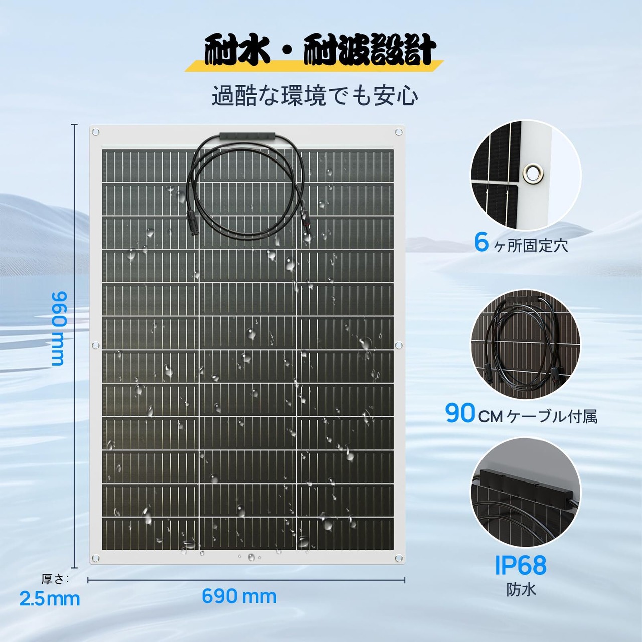 ECO-WORTHY 130W フレキシブルソーラーパネル 12V 245°高柔軟性 変換効率23% 12BB技術 太陽光パネル 曲げ可能 防水 、rv、キャンピングカー、キャラバン、キャンピングカー、ボート、屋根、凹凸面での使用に最適