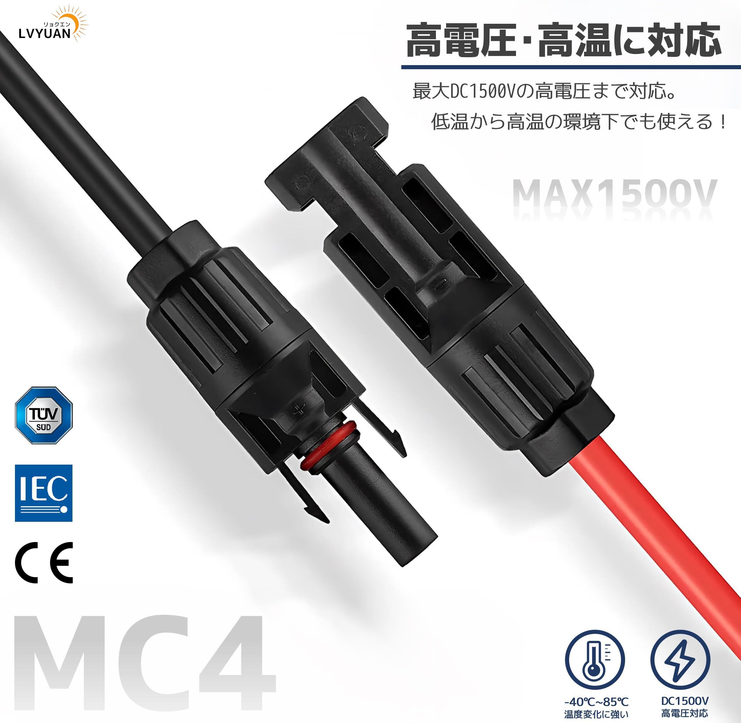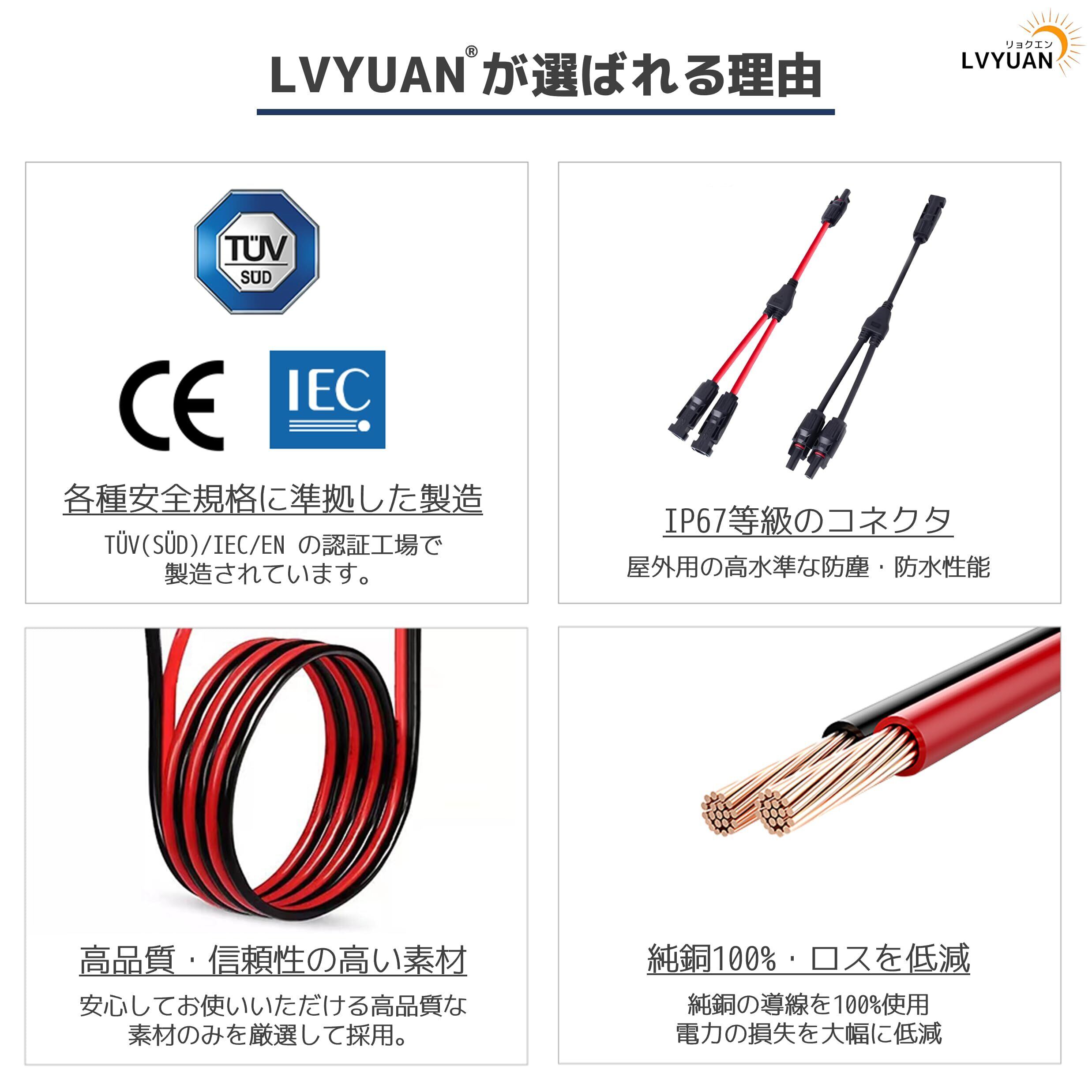 【数量限定】LVYUAN MC4コネクター Y字型コネクター 4sq(11AWG) 並列接続用 パネル2枚分 最大電圧1500V(DC) 許容電流47A IP67準拠 ソーラーパネル Y型並列MC4コネクター 接続ケーブル MC4型コネクター