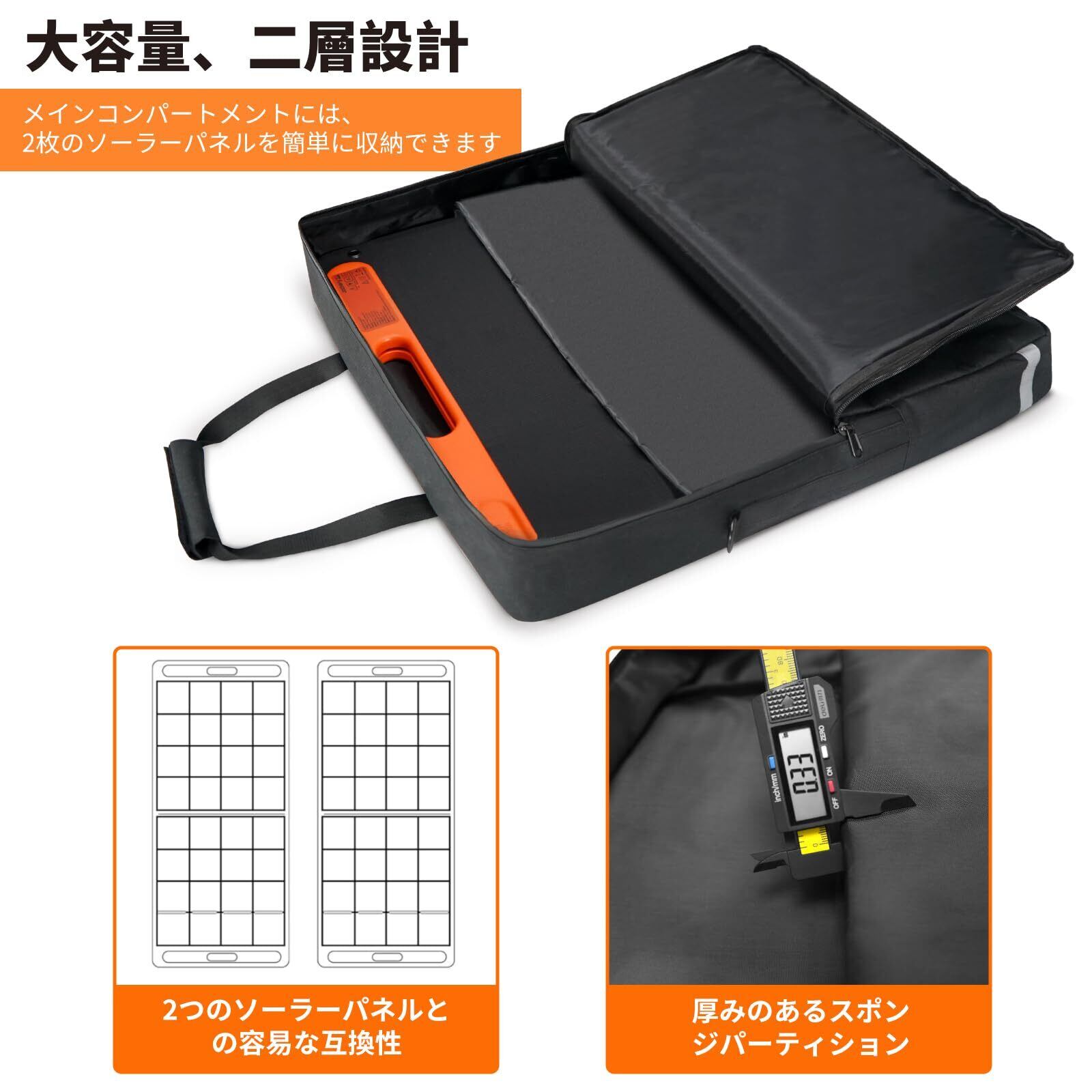 ソーラーパネル収納バッグ Jackery SolarSaga 100W/200、ANKER SOLIX PS100 PS200に適合して 2枚収納 ソーラーパネルバッグ マルチポケット付き ソーラーパネル ケース 防水 厚底 防塵 ハンドバッグ 耐久性 55CM×63.6CM×11.5CM (両肩掛け)