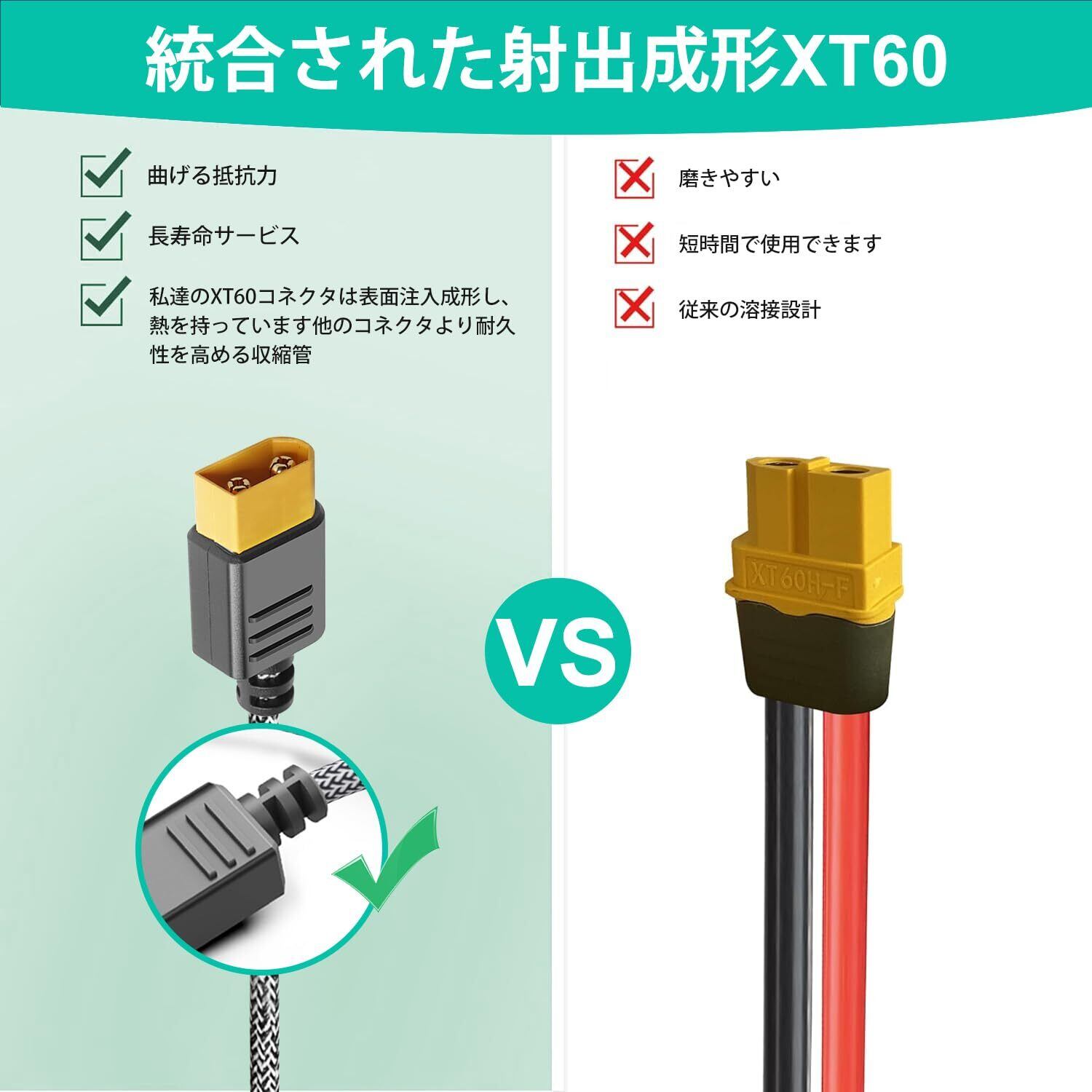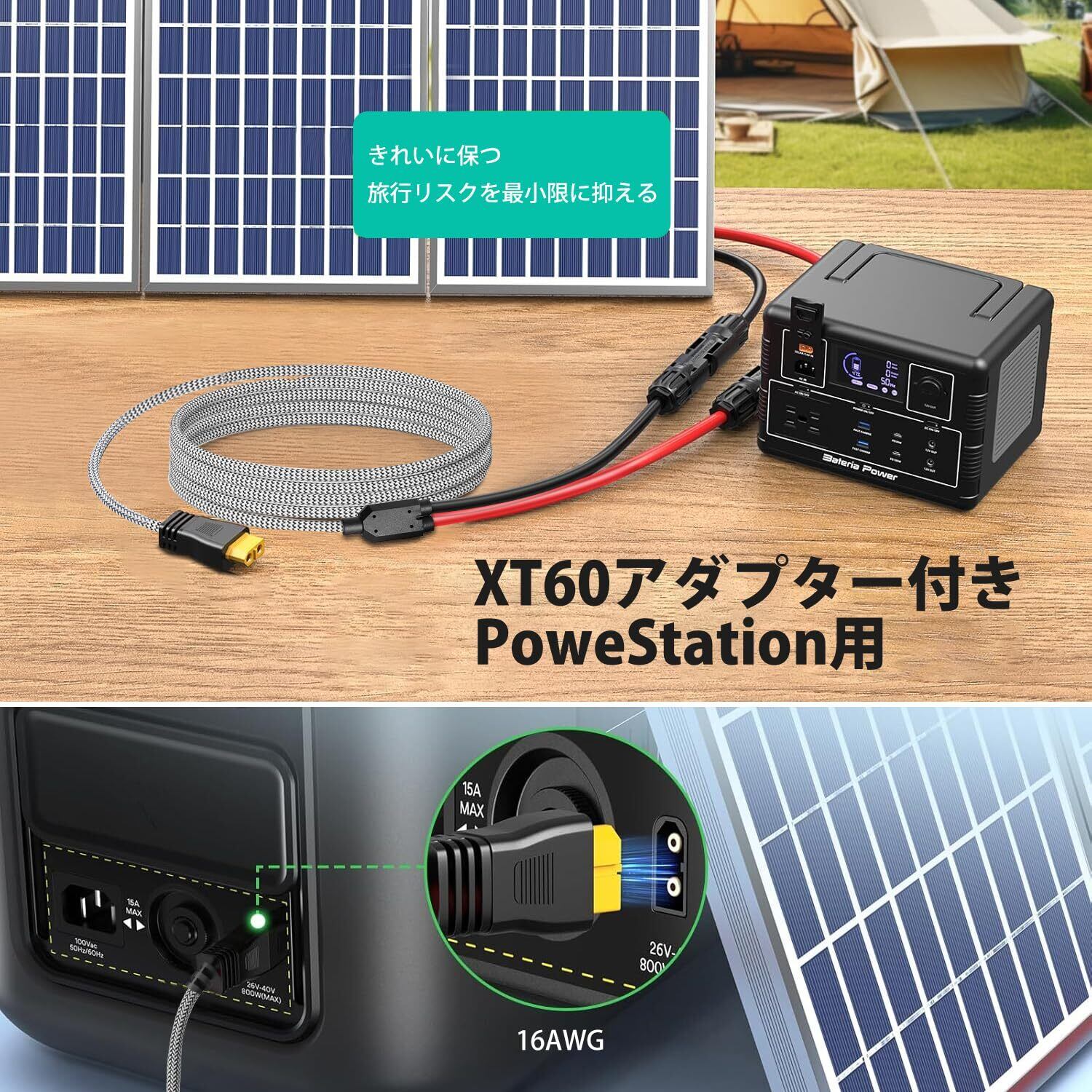 【耐久性】 ケーブルの内部は、ソーラーパネルシステムの電力損失を最小限に抑える低抵抗の銅でできています。XT60アダプターは、特定のブランドのポータブルパワーステーション、太陽光発電機、 ポータブル発電所、リチウム電池パック、ソーラー発電機にのみ適しています。ご購入の前に、お手持ちのデバイスをよくご確認ください。