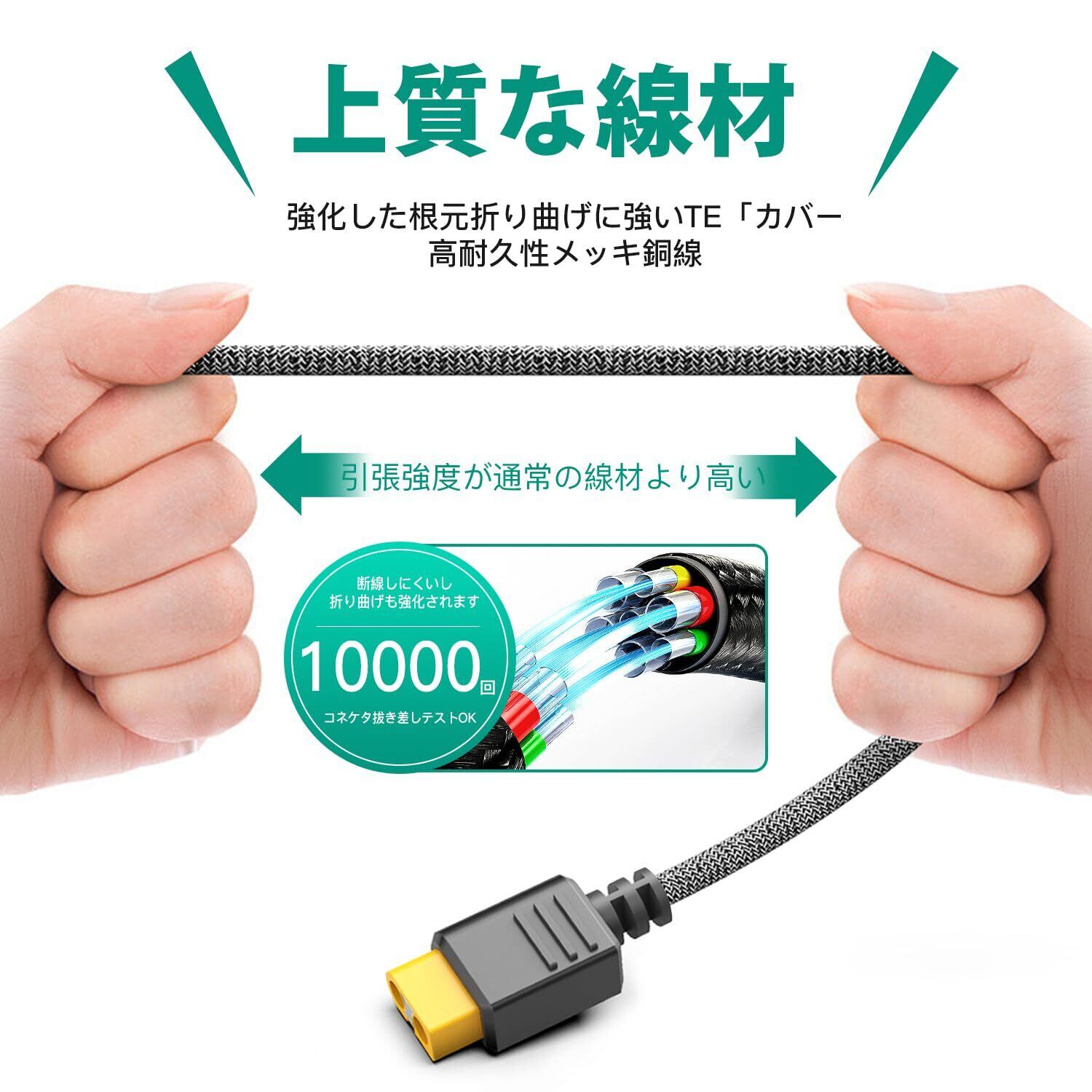 【耐摩耗性】 本製品は極端な暑さや寒さに耐えるように設計されています。保護被膜がしっかりしている為、断線しにくく丈夫です!※使用する際には、コードを引っ張って抜くのではなく、根元の部分をしっかり持って抜くようにしましょう。