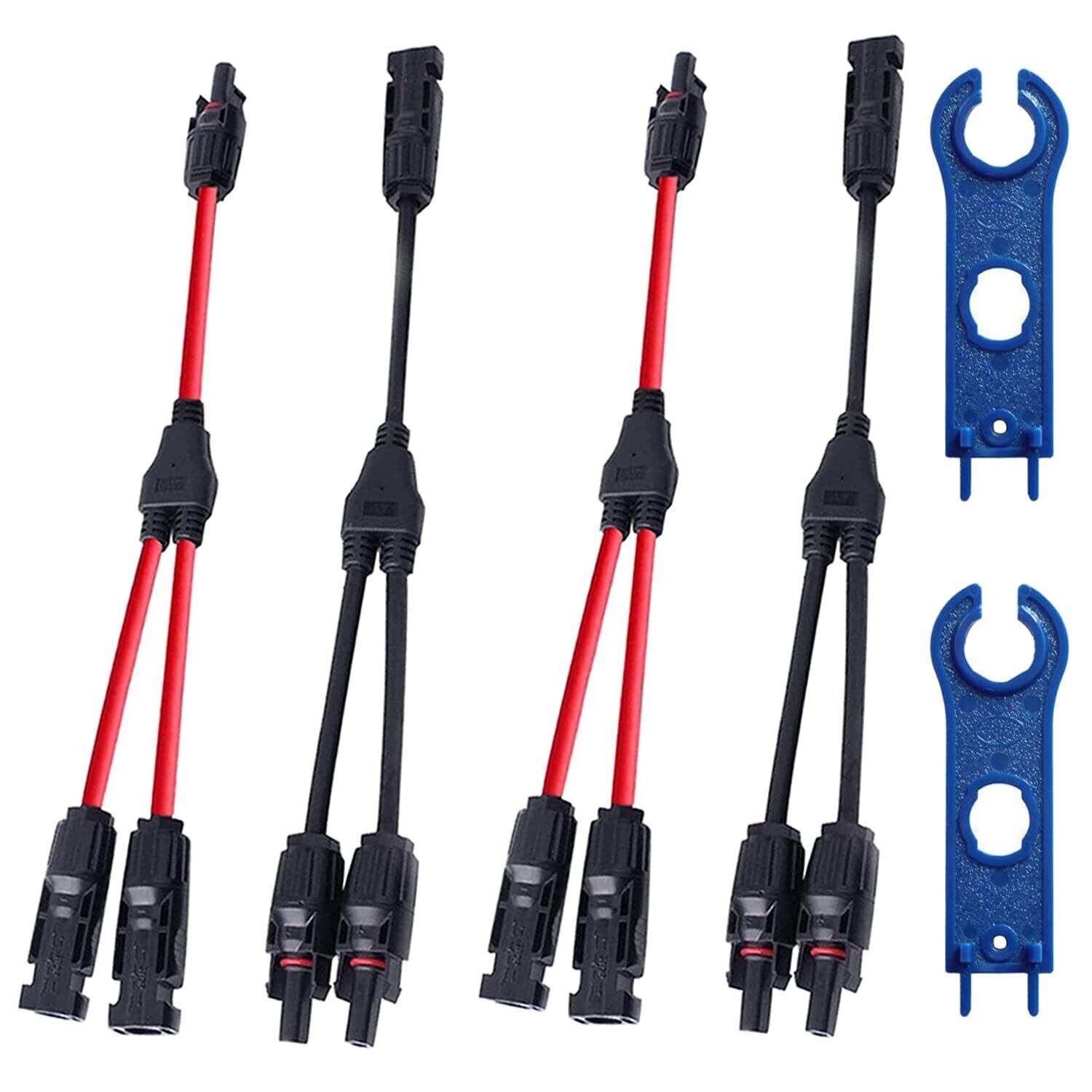 GTIWUNG 2組 MC4 コネクター(Y字型) ソーラーパネル専用 MMF + FFM ブランチ Y型並列MC4コネクター MC4コネクター ソーラーパネル 接続ケーブル用 MC4型コネクター (オス・メス) MC4コネクタ 取り付けレンチ 2本