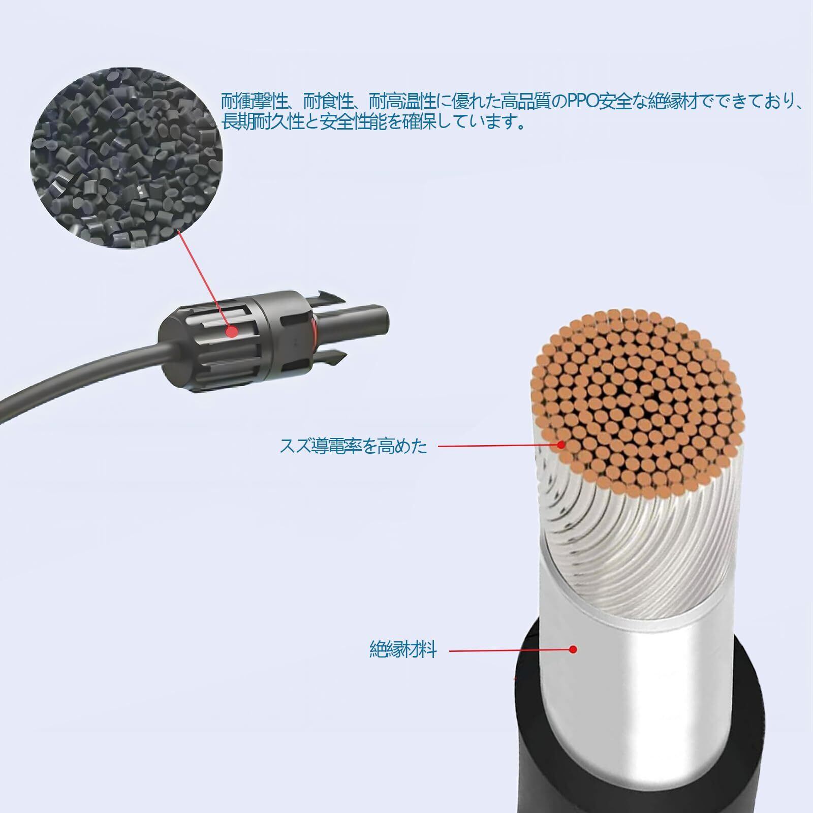 簡単で安心に使用:ソーラーコネクタには、湿気や粉塵の侵入を防ぐための防水リングが装備されており、IP等級「IP67」に準拠しております。必要に応じてオスとメスのコネクタを接続し、ケーブルの一端をソーラーパネルと並列に接続し、もう一端をソーラー充電コントローラーに接続するだけで、操作は非常に簡単で、安心して使用できます。