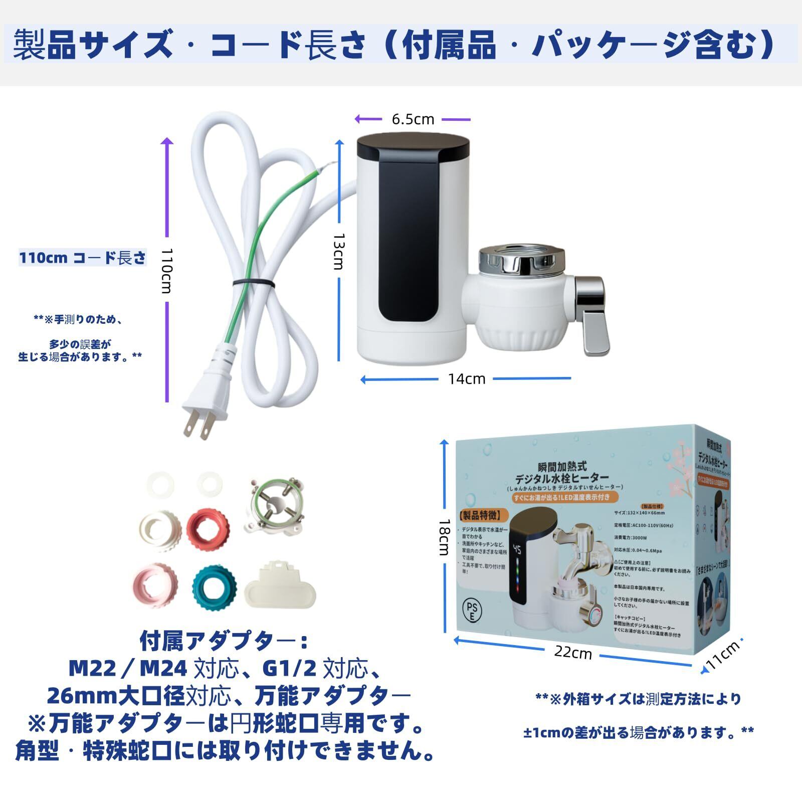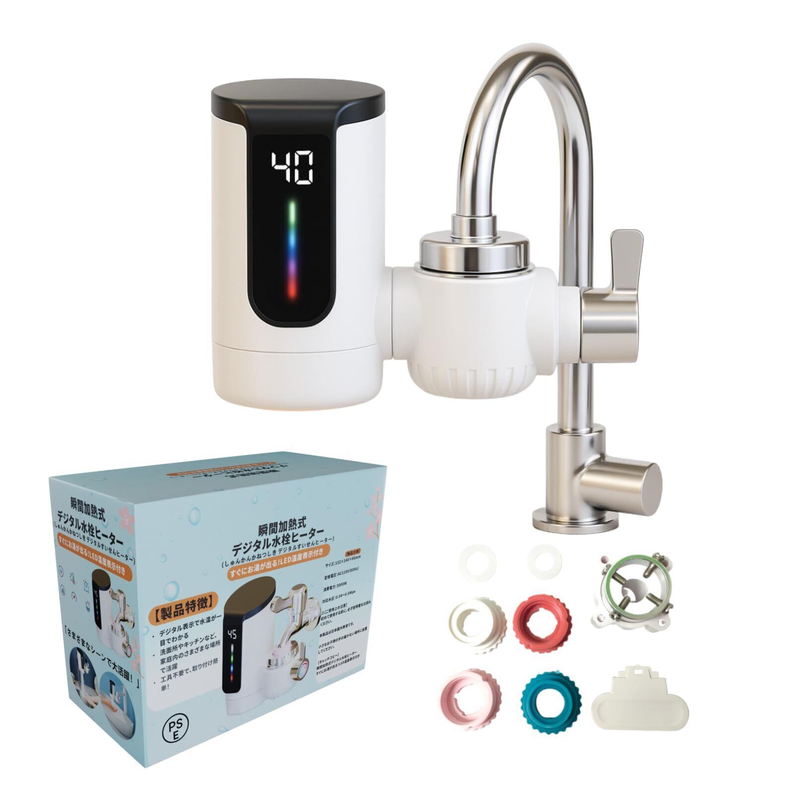 【在庫限り】正規品 瞬間湯沸かし器 電気温水器 電気蛇口 温水ヒーター 3秒速熱 PSE認証済み 日本100V対応 3000W 家庭用給湯器 LED温度表示 簡単取付 【2025年モデル 日本語説明書付き】