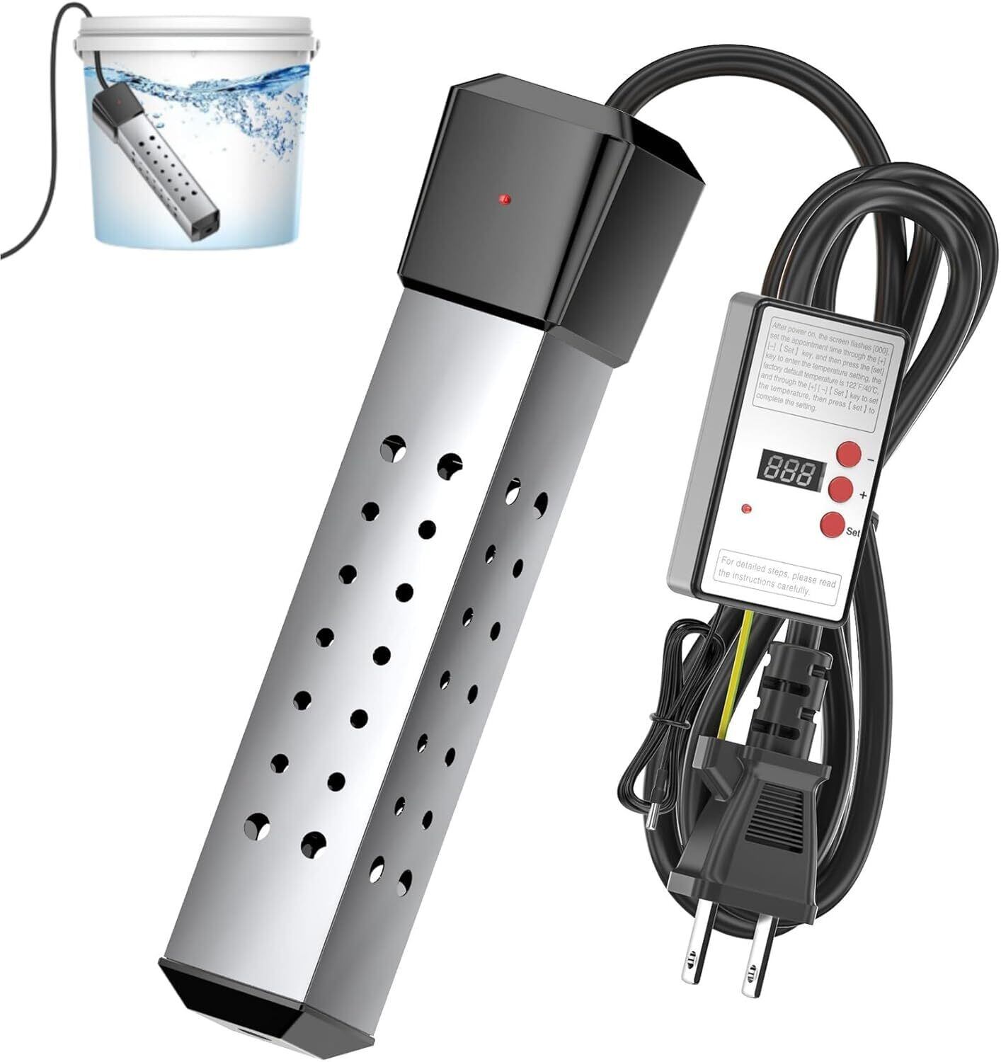 【特別価格】[Firmiarii]投げ込みヒーター 温水器 湯沸かし器 電気給湯器 浴槽用給湯器 2000W切替 温度調整 タイマー機能簡易追い焚き機 空焚き防止 安全設計 急速加熱 ステンレス製 お風呂のお湯を温める機械 ポータブル 家庭用 アウトドア 学校 介護施設 防水 省エネ 自動電源オフ