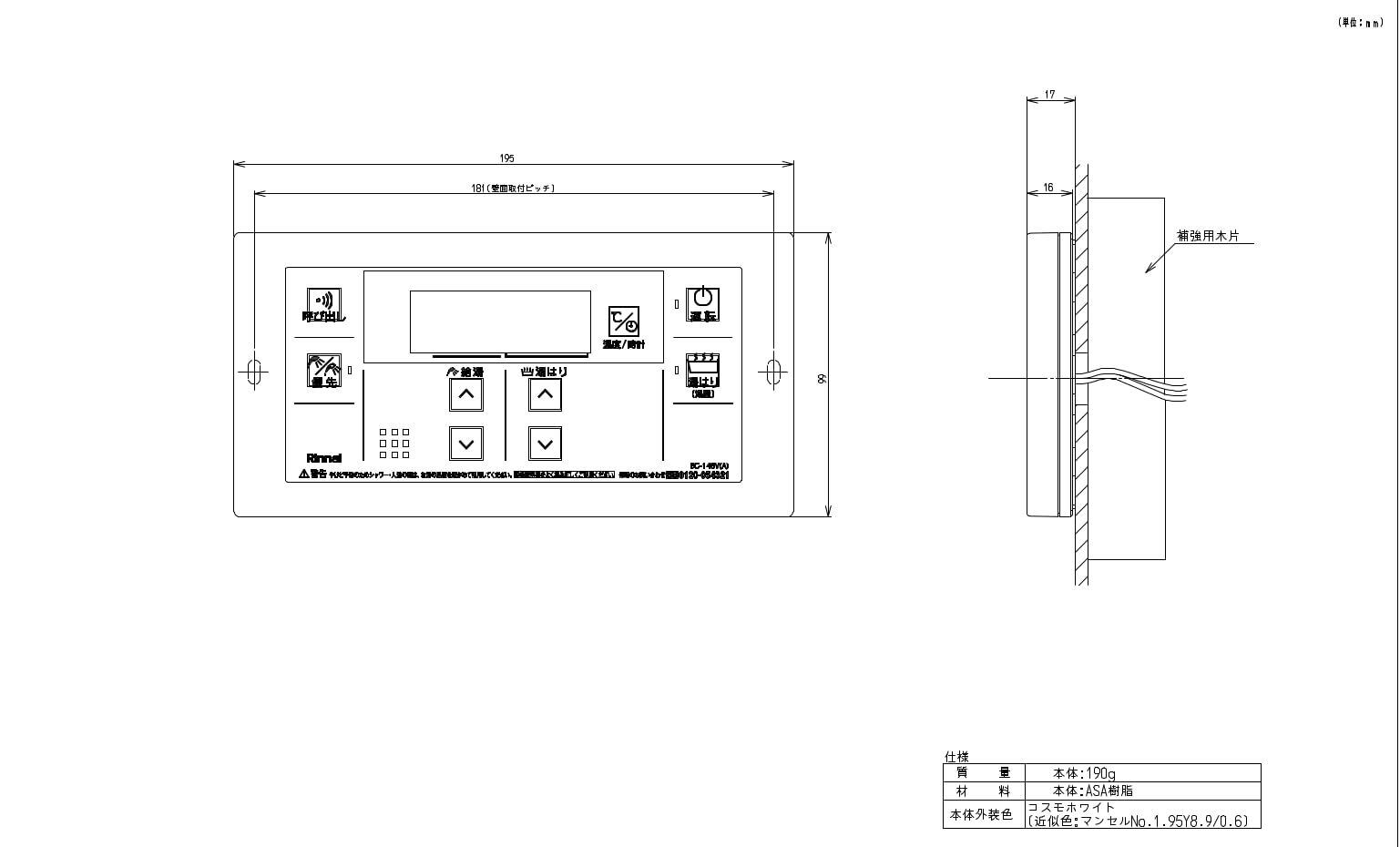 リンナイ Rinai 給湯専用リモコン 浴室リモコン 【BC-145V(A)】 オートストップ対応 風呂リモコン