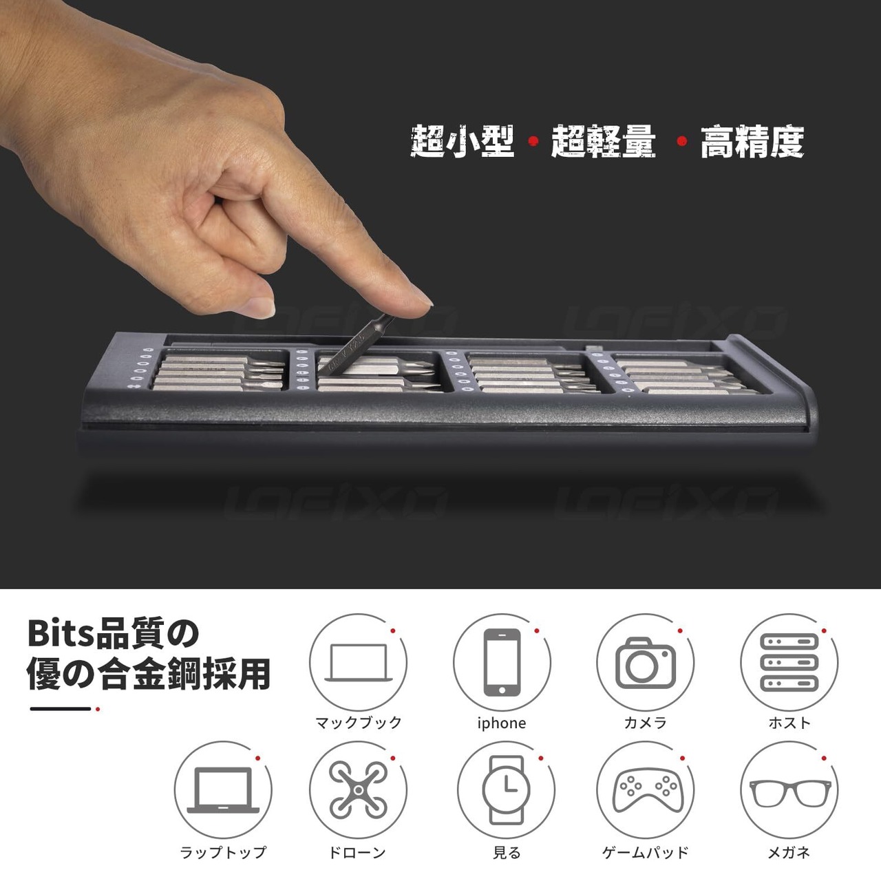 【25 in 1 精密ドライバー-】合金鋼のビット硬度は60HRC(公差:±3HRC)- 高硬度、耐衝撃性、高い耐久性の利点。ペン型ドライバーの一体成形プロセスで、と特殊な滑り止め処理、円滑なエッジで快適な手触りが得られます。ターンキャップ設計のアルミニウム合金ドライバーに、ビットのサンドブラスト加工された表面陽極酸化処理、防錆。高い耐久性があるので、長く安心でご使用いただけます