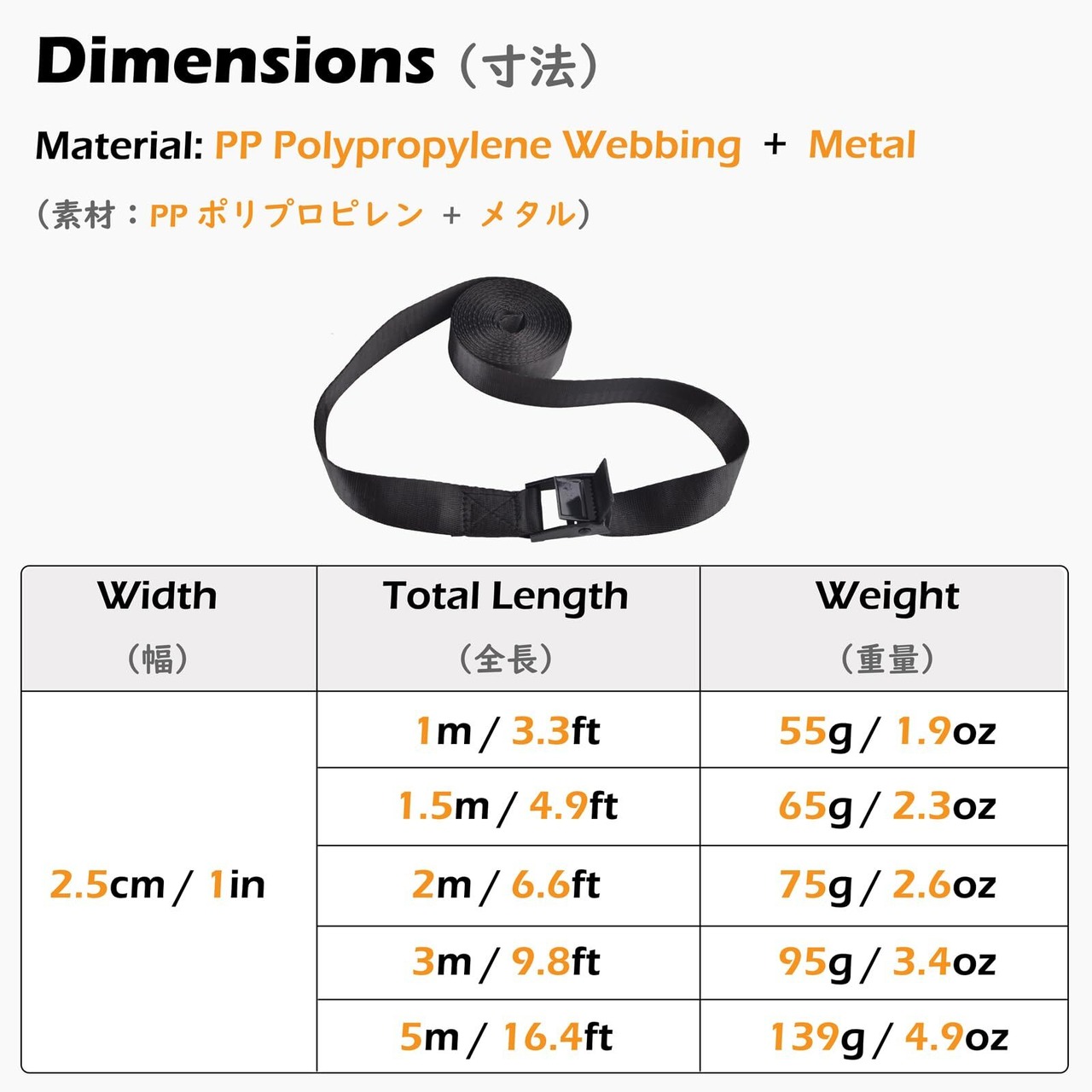【仕様 】材質:ベルト/ポリプロピレン、カムバックル/亜鉛合金 幅:25mm 長さ:1m/1.5m/2m/3m/5m 4本セット