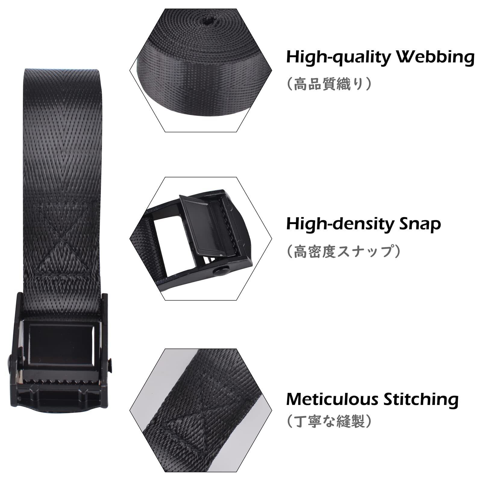 TRIWONDER 荷締めベルト 荷締バンド ラッシングベルト 多用途 固定ベルト タイダウンベルト 結束バンド 梱包 ベルト 固定バンド 荷締機 自動車ベルト バイクベルト Lashing Strap 地震対策グッズ (1# ブラック - 4本, 2m)