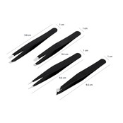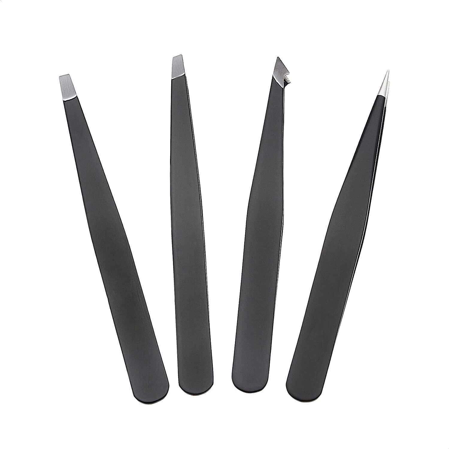 ベーシック ピンセット プロ仕様 ステンレススチール 顔の毛/まつげ/眉毛/埋没毛用 トラベルケース付き ブラック 4本セット