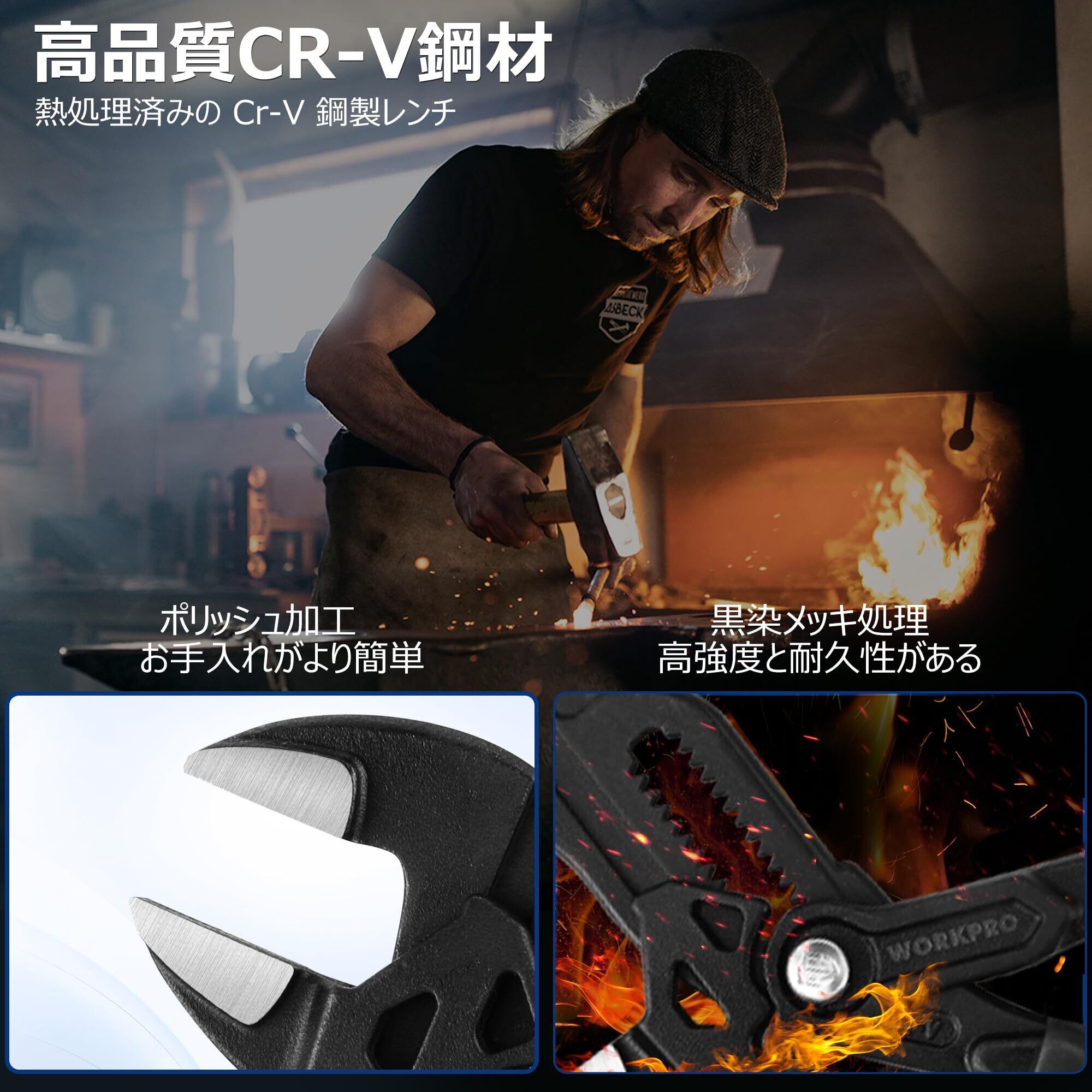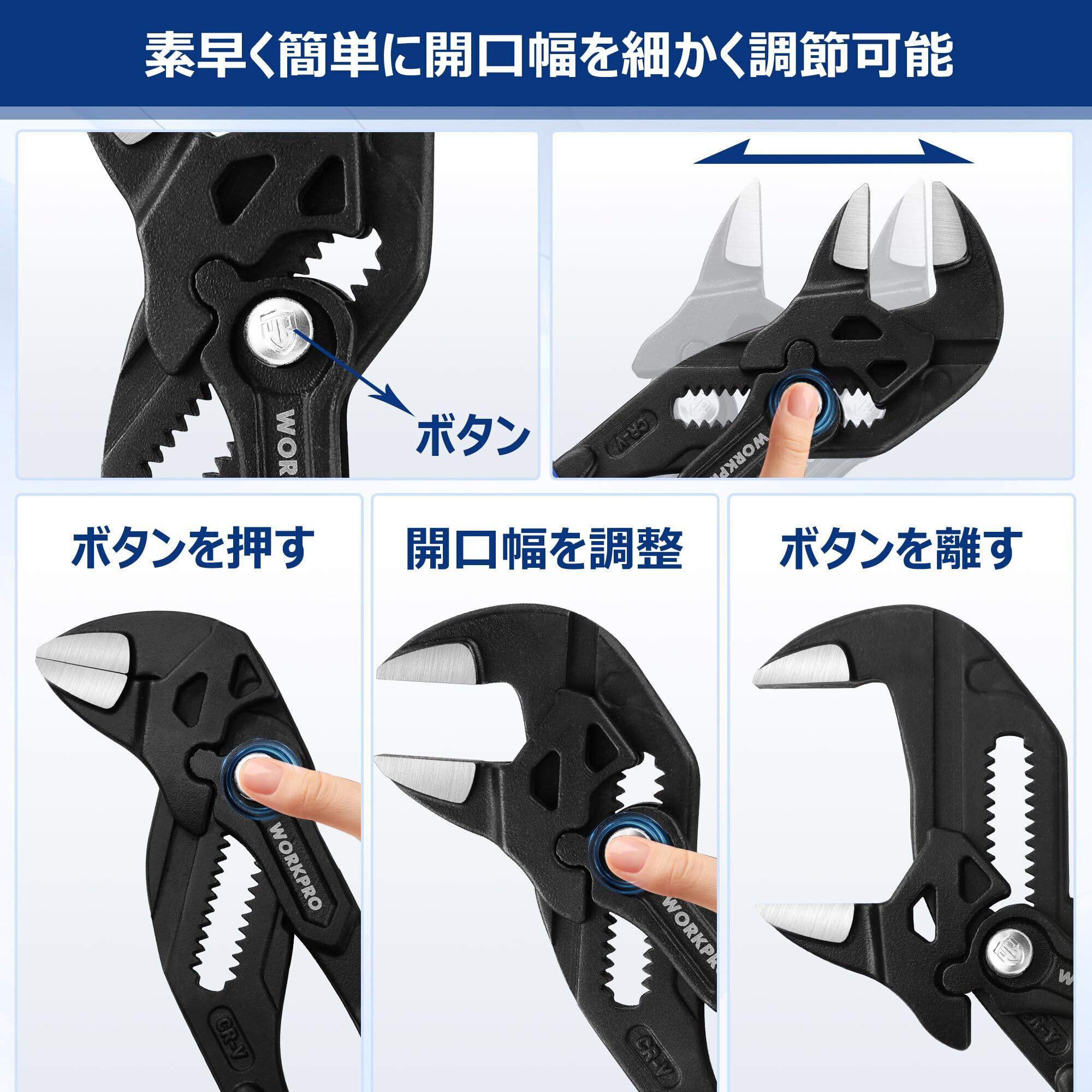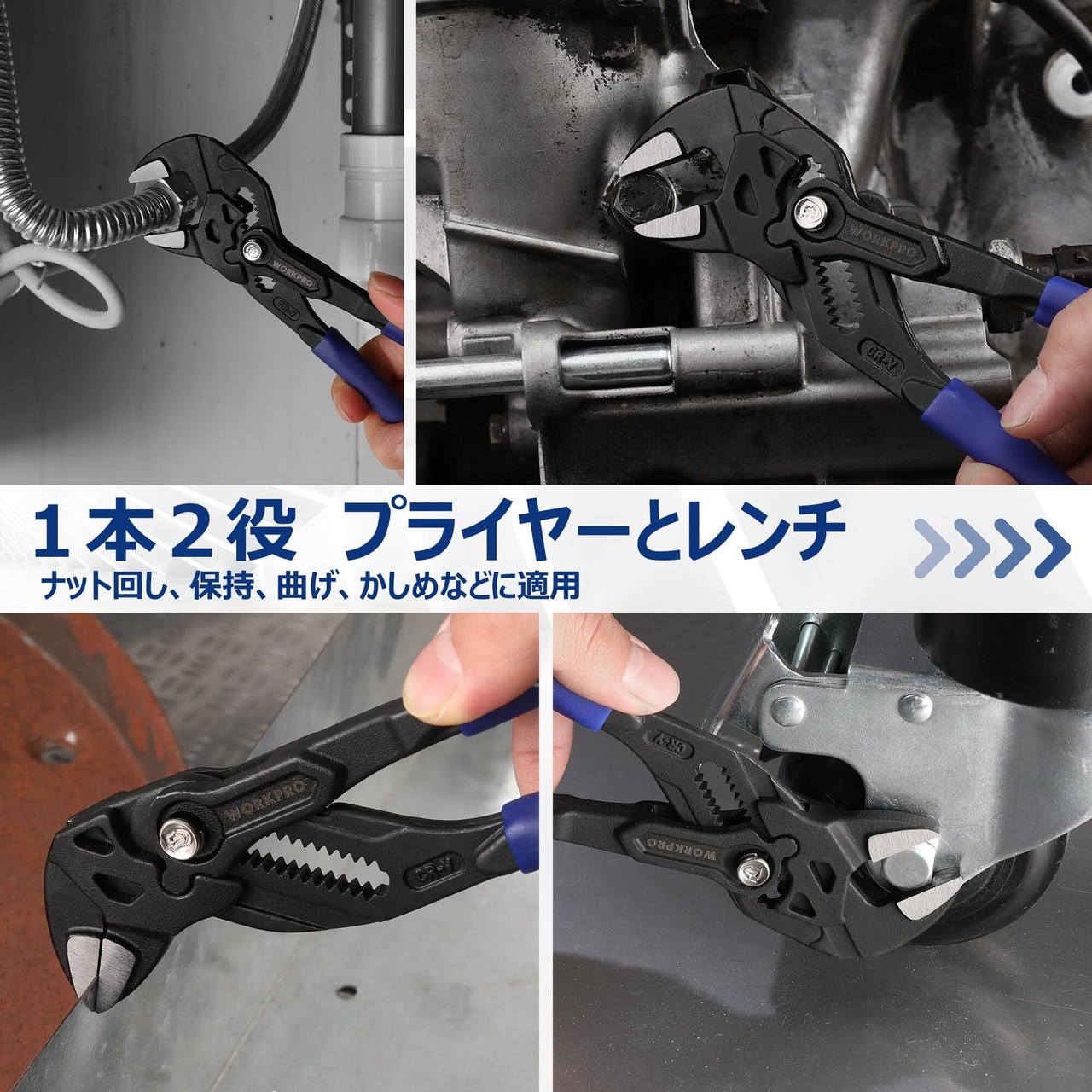 【限定セール】WORKPRO プライヤーレンチ モンキレンチ アジャスタブルレンチ 全長約180mm ペンチレンチ CR-V 建設用レンチプライヤー 最大口開幅 約40mm ブラック仕上げ ロック機構