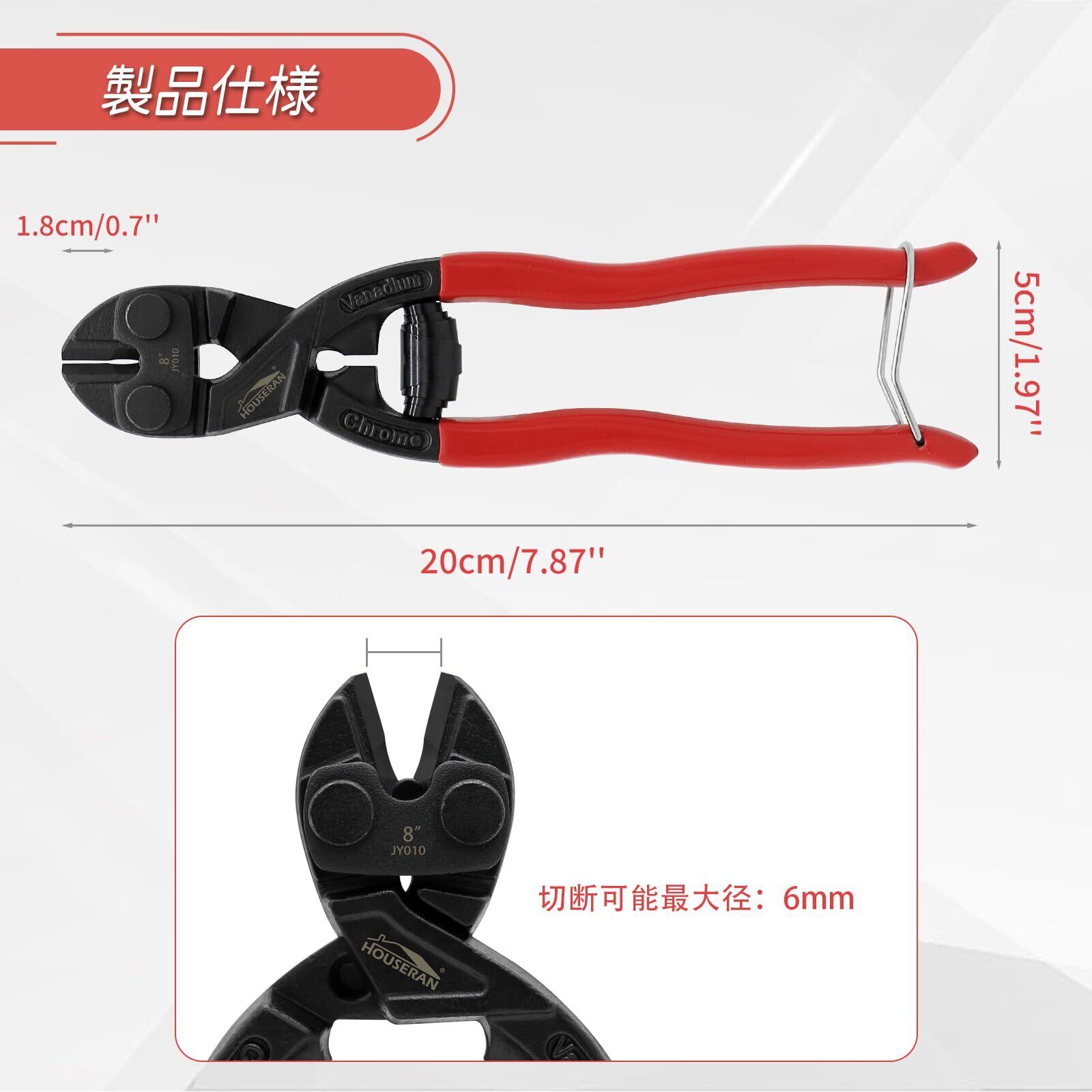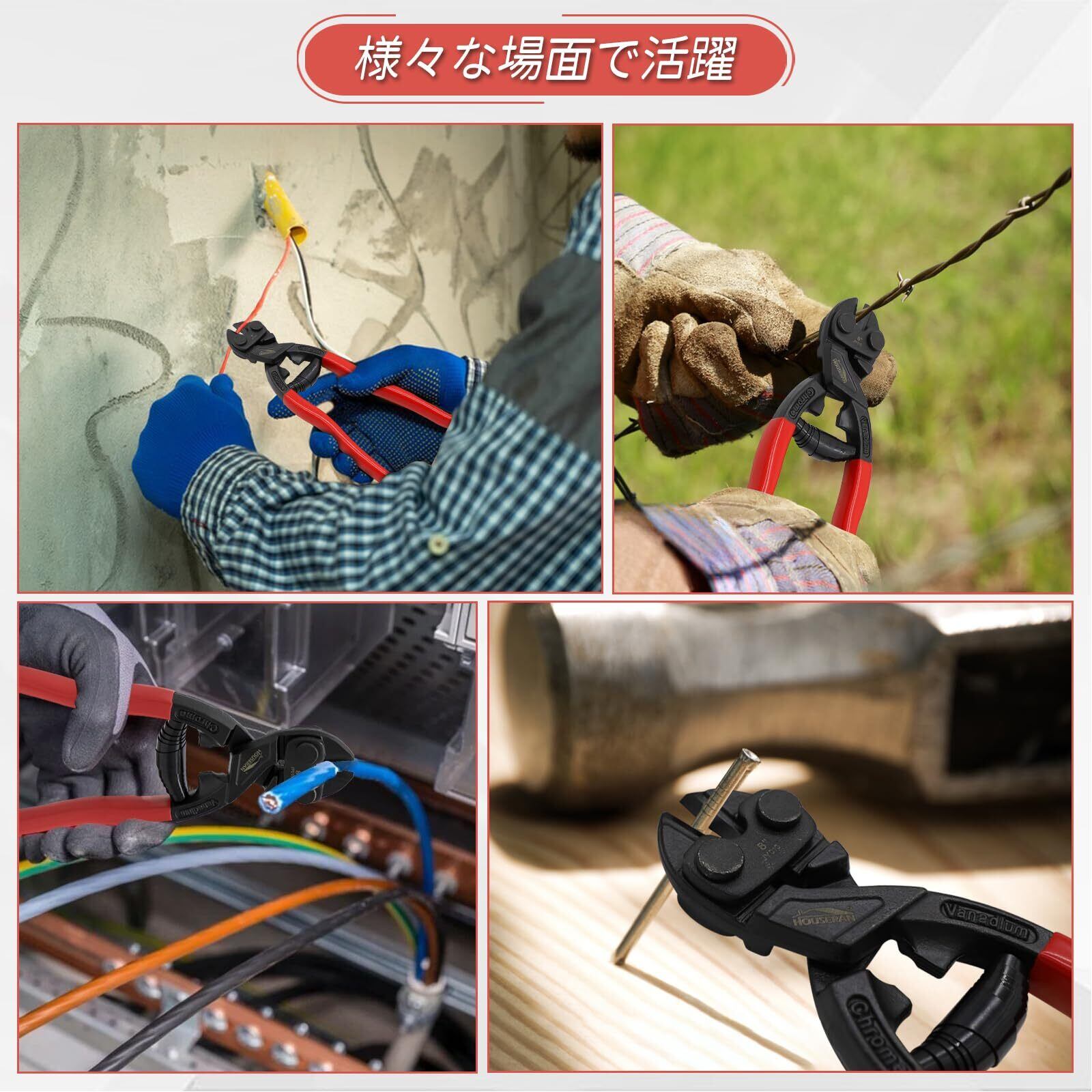 【優れた切断性能】精密に設計されたブレードで、番線カッターとしても強力な性能を発揮。ボルト、ワイヤー、釘、チェーンなど最大6mmまでの材質を楽に切断できます。家庭用から工業用、DIYプロジェクトまで幅広くご利用いただけます。