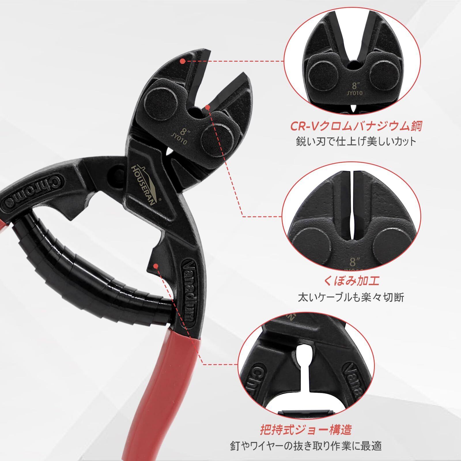 ボルトクリッパー 20cm 番線カッター 強力 針金 切断 南京錠 カッター ボルトクリッパ 軽量 ワイヤー ケーブル リベット チェーン スクリュー ボルトの切断用CR-Vスチールブレード