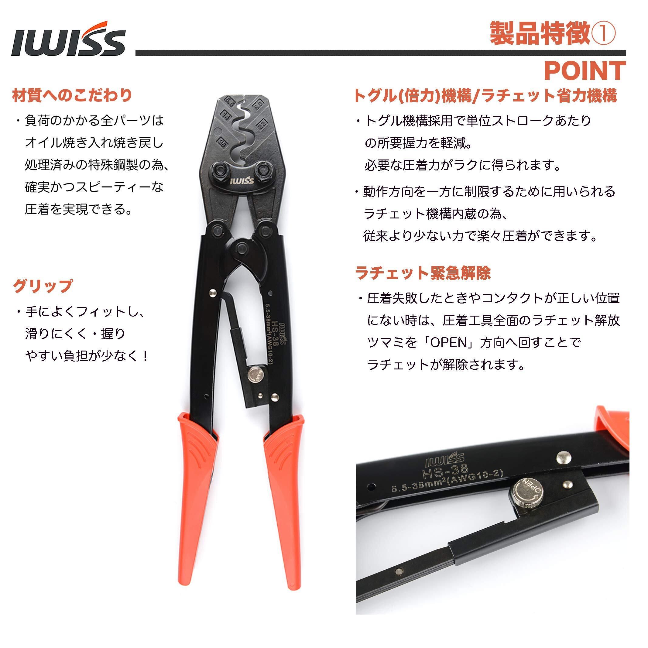 アイウィス(IWISS) 裸圧着端子 裸圧着スリーブ 圧着工具 汎用タイプ 5.5-38.0sq対応 HS-38