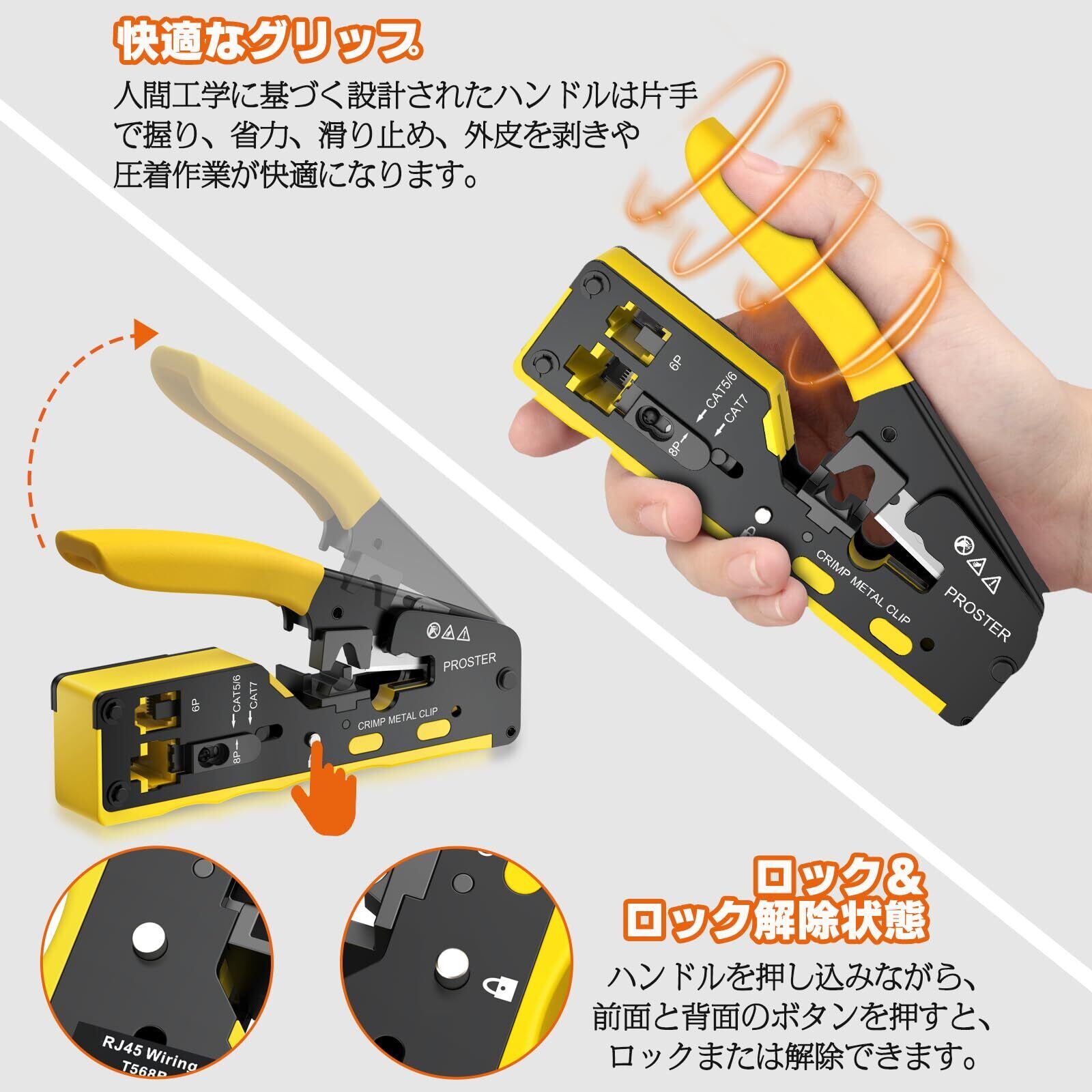 Proster RJ45 圧着工具 LANコネクタ かしめペンチ CAT5/CAT6/CAT7対応 RJ45貫通型コネクター付属 ケーブルテスター 替刃 日本語説明書付き 電話線対応 LANケーブル製造 8P+6P圧着