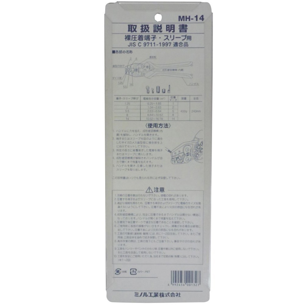 仕様:JIS、圧着マーク、コンパクト、楽々圧着、端子仮押さえ