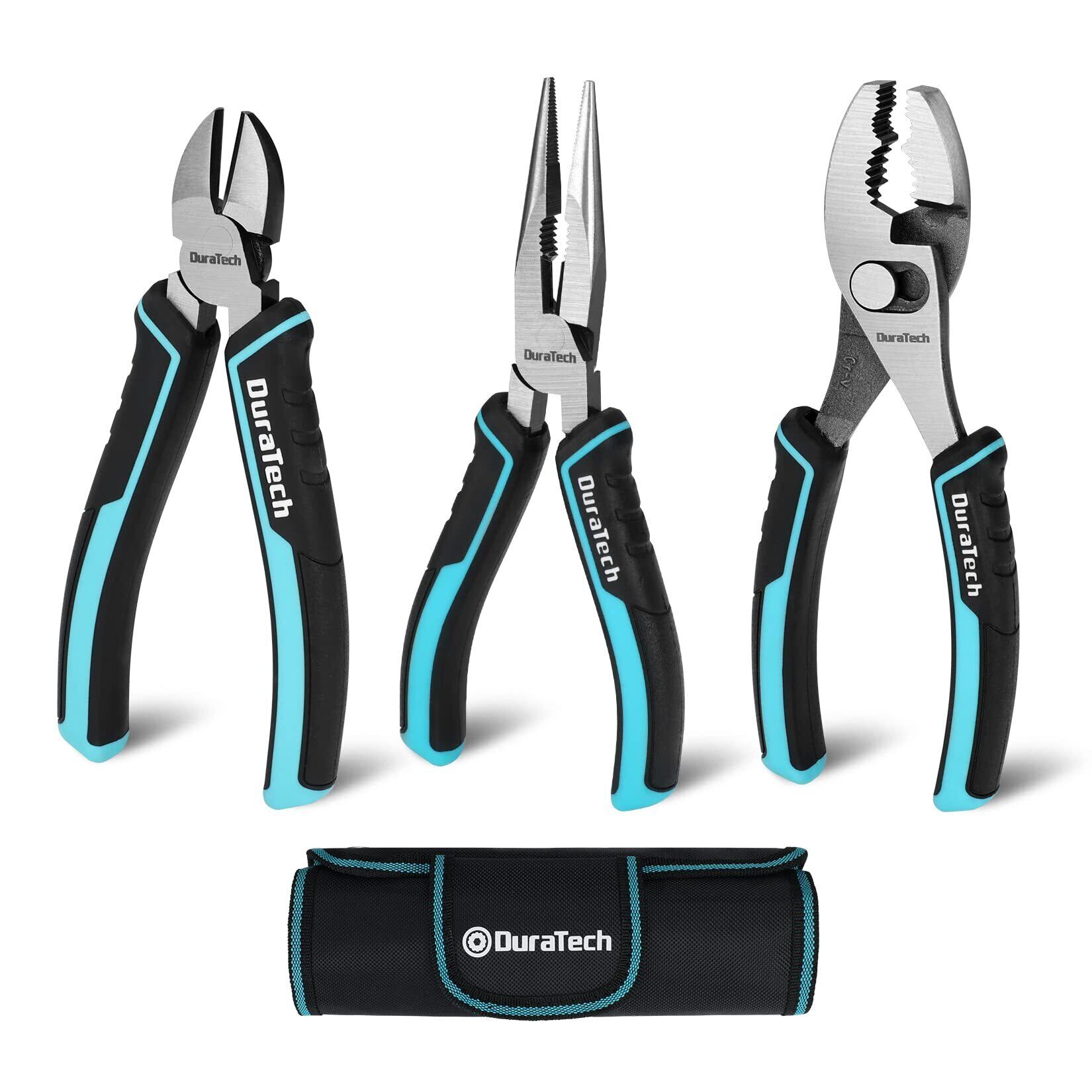 DuraTech プライヤーセット ペンチセット ニッパー ラジオペンチ スリップジョイント 3点セット コンビネーションプライヤー 斜めカッティングプライヤー ニードルノーズプライヤー 収納バッグ付き 宝石メーカー 電気技師 家庭修理 作業工具 DIY 手芸用品 手作り アクセサリー作り