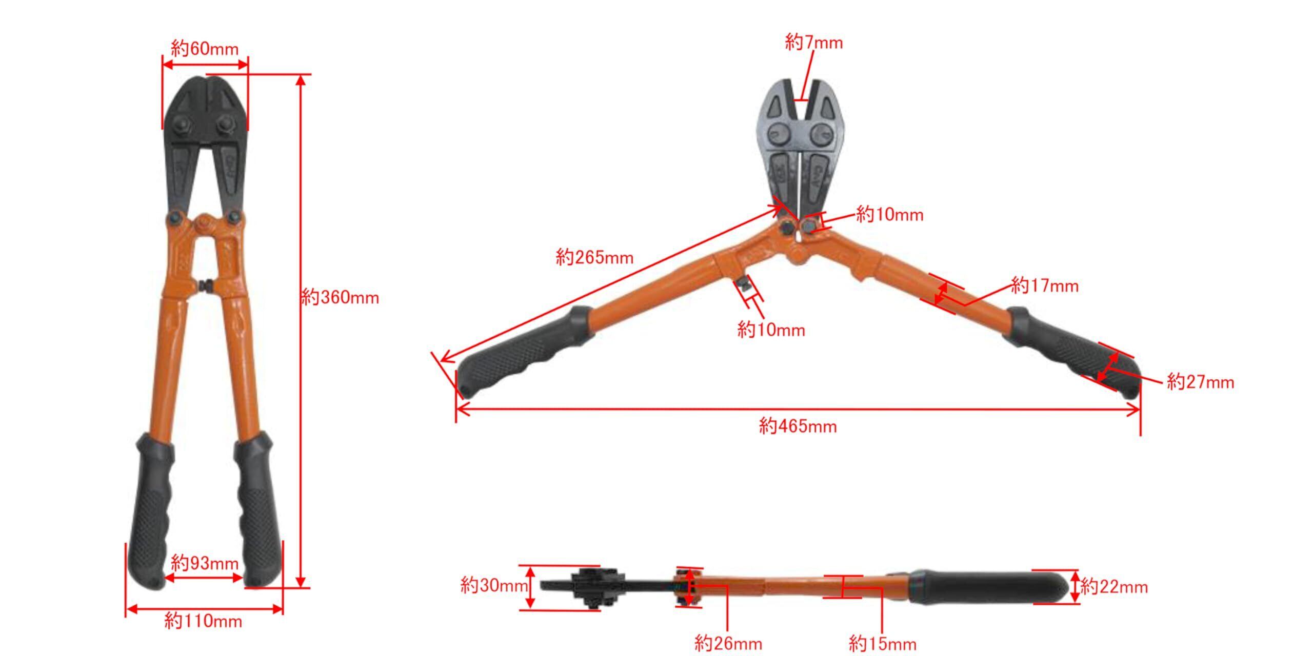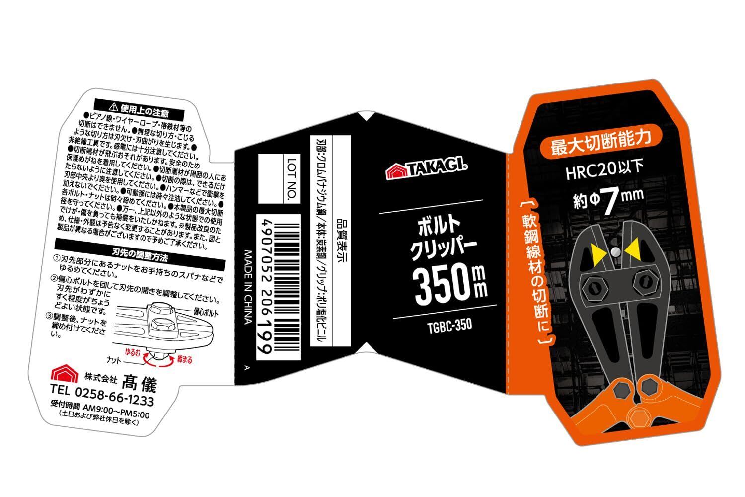 高儀(Takagi) ボルトクリッパー 番線カッター ボルトカッター 鉄筋カッター ワイヤーカッター 350mm 軟鋼線材 鉄線 針金 切断 工具 刃先の開き 調整可能 TGBC-350