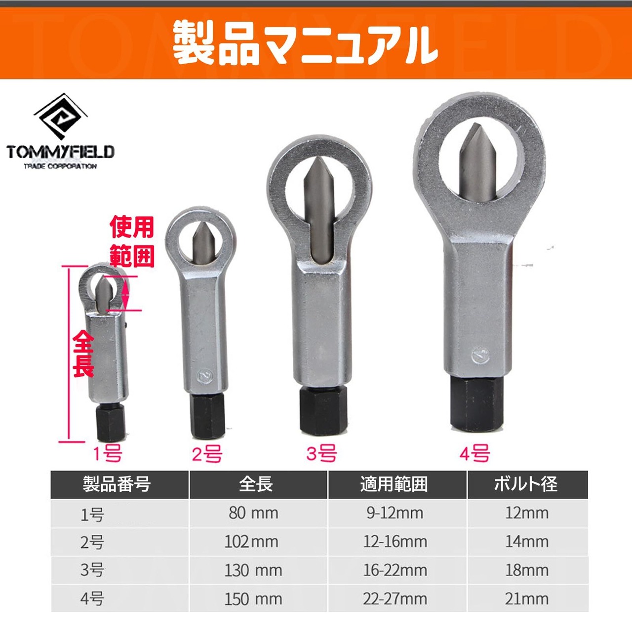 このナットブレーカー・ナットスプリッターは、頭固めナットに悩んでいる方に最適なツールです。錆びたナットや固着したナットを効果的に解除し、頑強なナットに立ち向かうための必須アイテムとなるでしょう。