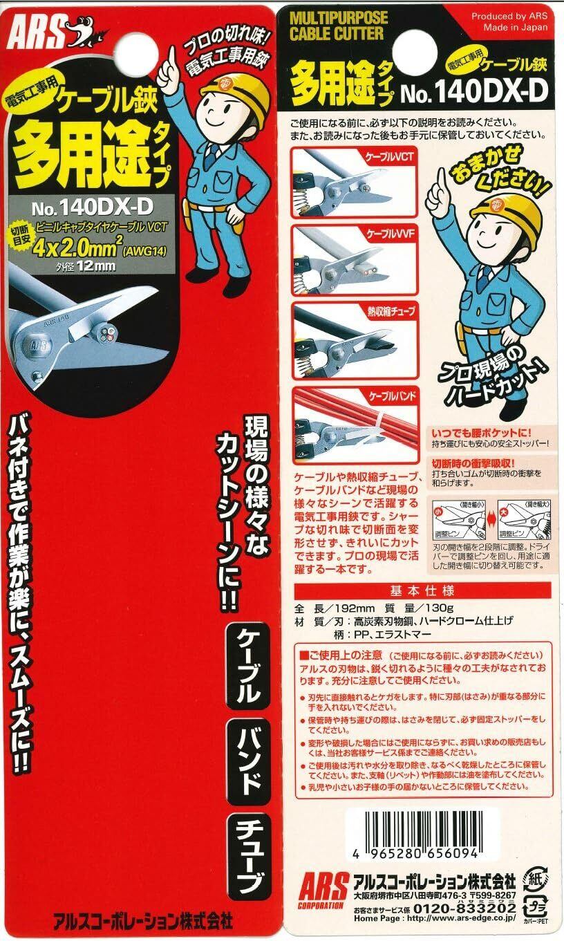 【限定セール】アルスコーポレーション 電気工事用ケーブル鋏 多用途タイプ 140DX-D
