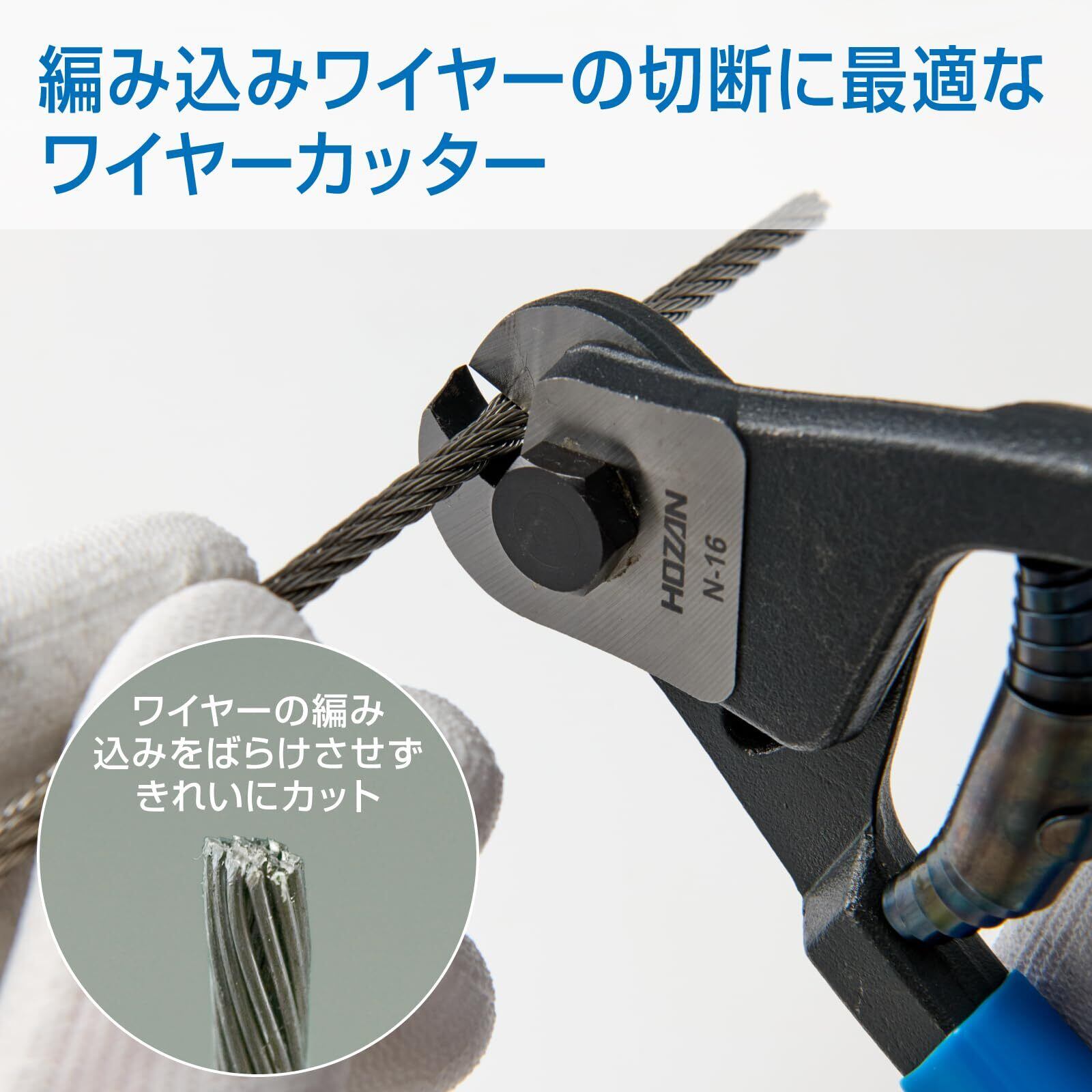 【在庫限り】ホーザン(HOZAN) ワイヤーカッター ステンレスワイヤー対応 編み込みワイヤーをばらけさせずにきれいにカットできます N-16