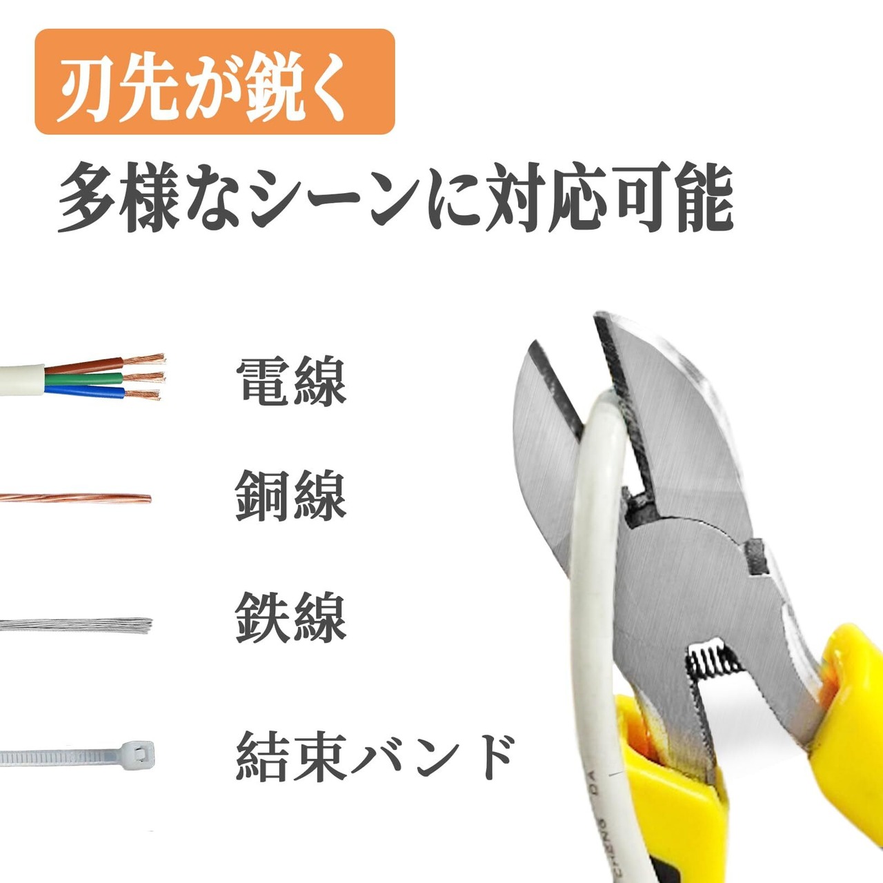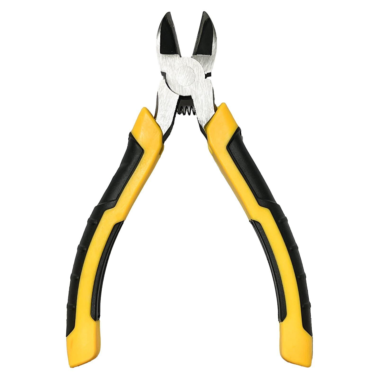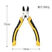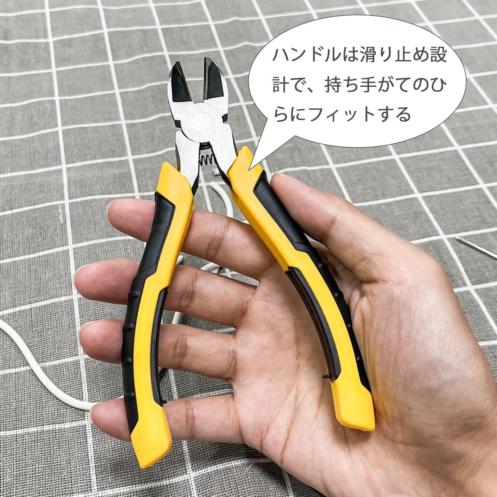 産業用斜め刃ニッパー 高炭素鋼の鋭い刃先で電子配線/対応 黄黒の滑り止めハンドル付き/電気工事用工具 斜めプライヤー