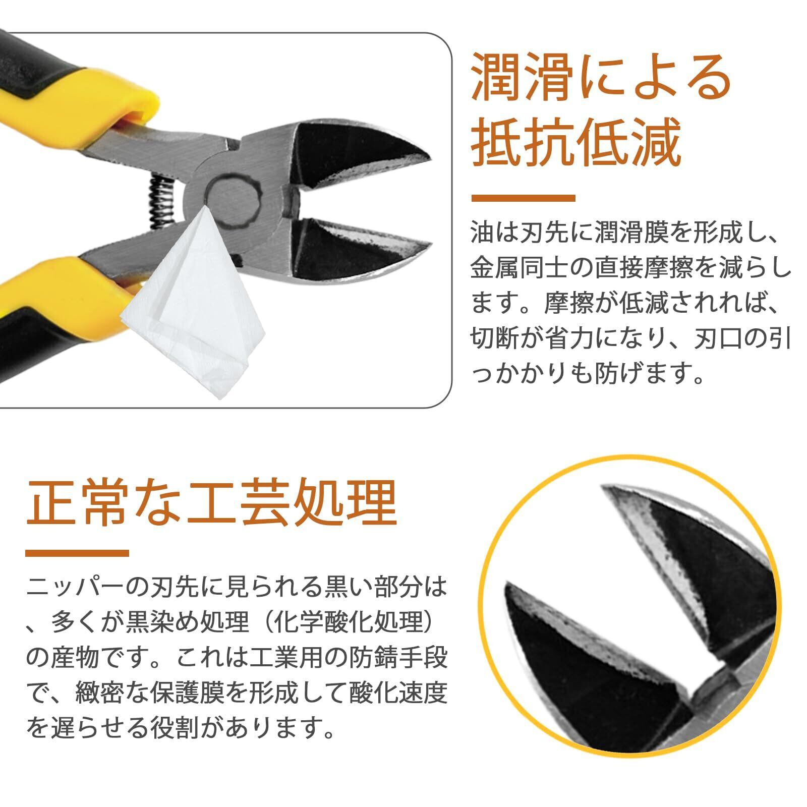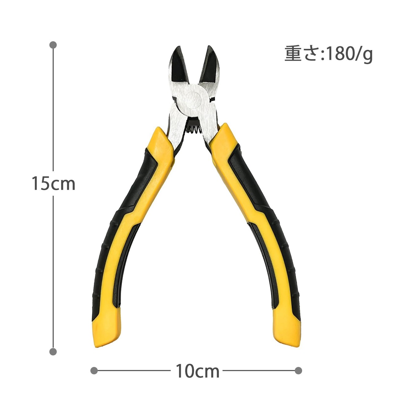 【数量限定】産業用斜め刃ニッパー 高炭素鋼の鋭い刃先で電子配線/対応 黄黒の滑り止めハンドル付き/電気工事用工具 斜めプライヤー