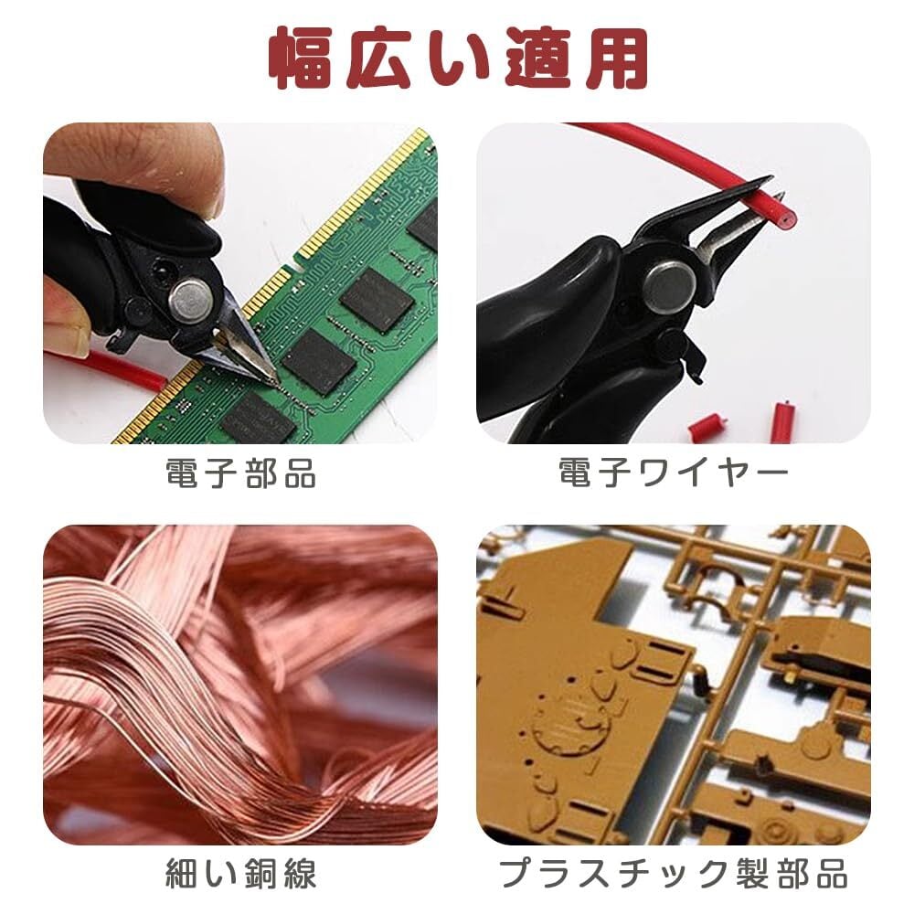 【幅広い適用】電線ケーブル、タイラップ、ビーディングワイヤー、結束バンドなど、多様な素材の切断に最適。DIYからプロフェッショナル作業まで幅広く活用できます。