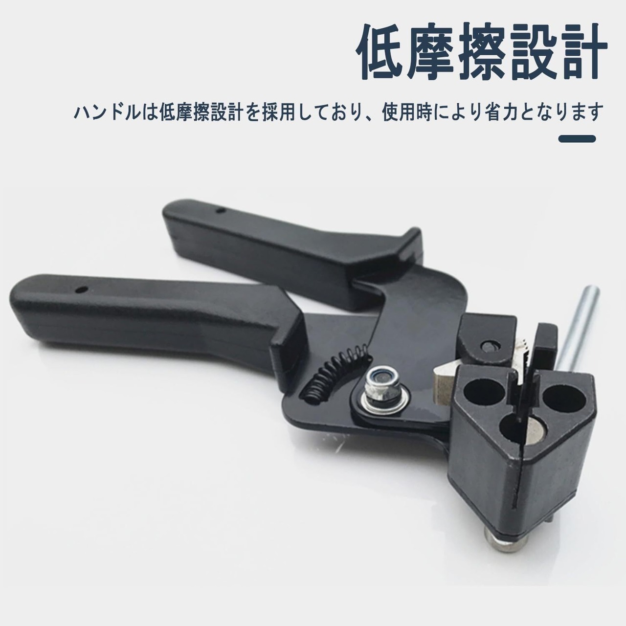 【使用方法】ケーブルタイをプライヤーに差し込んだ後、ハンドルを持ち上げて繰り返し操作することでケーブルタイをしっかりと締め付けます。その後、カットレバーを上に押し上げることでケーブルタイを簡単に切断できます。安全のために、作業中に手袋を着用することをお勧めします。