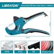 LIBRATON 塩ビカッター 重切削 エンビカッター ラチェット式 塩ビ管カッター PVCパイプカッター 切断能力 42 mm 替刃付き