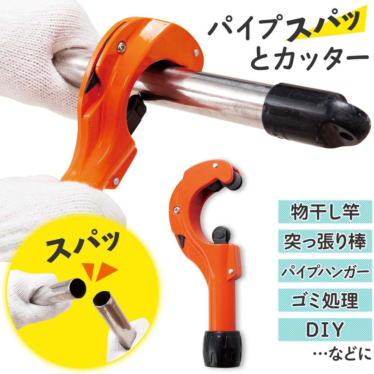 【特別価格】コモライフ パイプスパッとカッター パイプカッター 【切断可能サイズ:直径約5~50mmまで】 カッター イレクターパイプ いれくたーパイプ ステンレスパイプ 塩ビパイプ 鉄パイプ アルミパイプ 物干し竿 突っ張り棒 パイプハンガー DIY 塩ビカッター 面取りカッター付き 替え刀付き 挟んで回すだけ