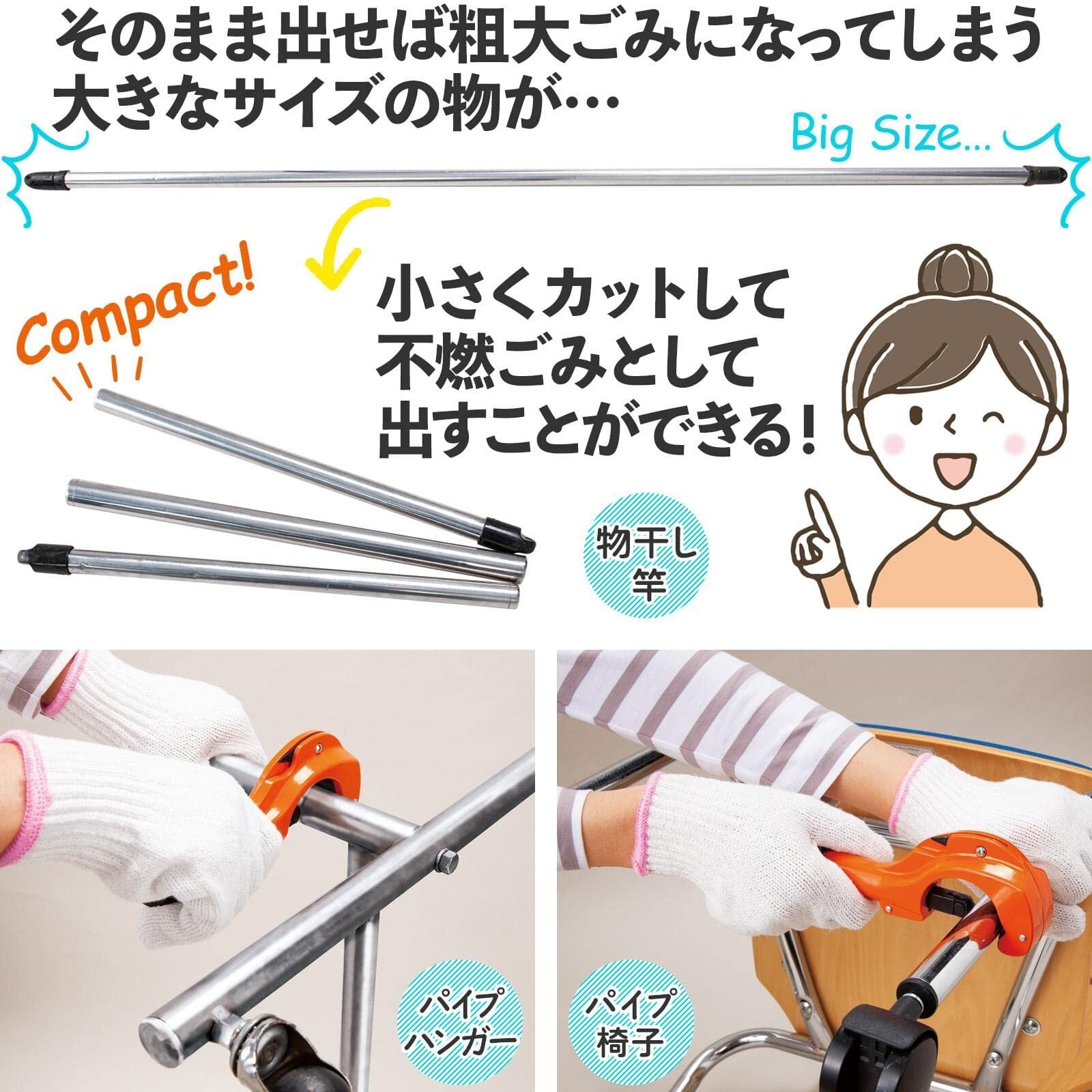 パイプを挟んで回すだけでコンパクトにカット!