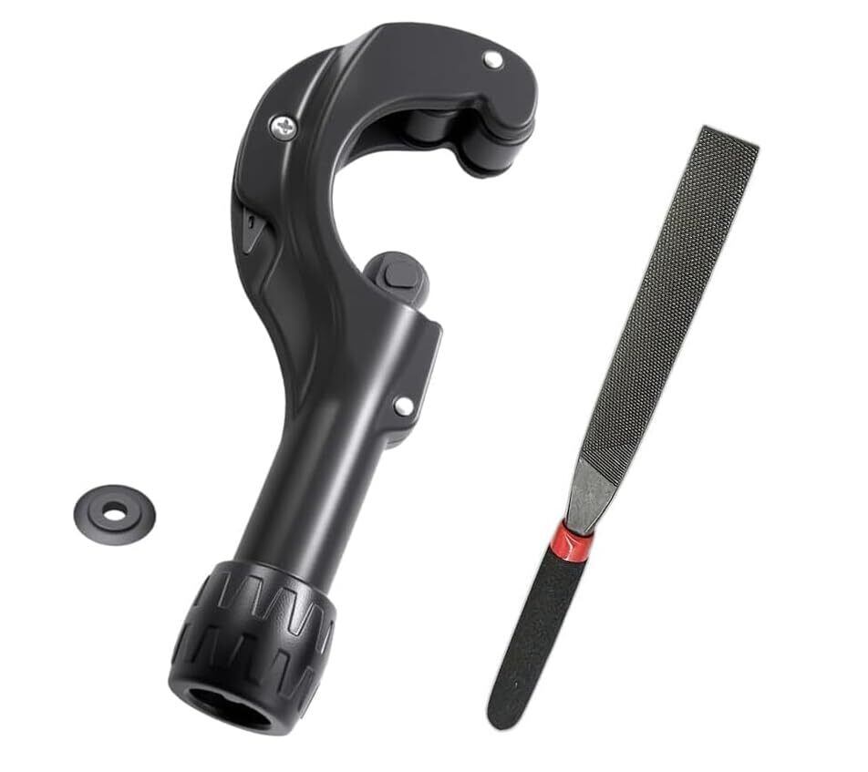パイプカッター 3-35mm対応 高耐久アルミ合金製 銅管・アルミ管・ステンレス管・塩ビ管・薄肉鋼管対応 替刃PSB-7付き 物干し竿・自転車ポスト・イレクターパイプ切断用 DIY工具 ブラック (スチールパイプカッター+ヤスリ)